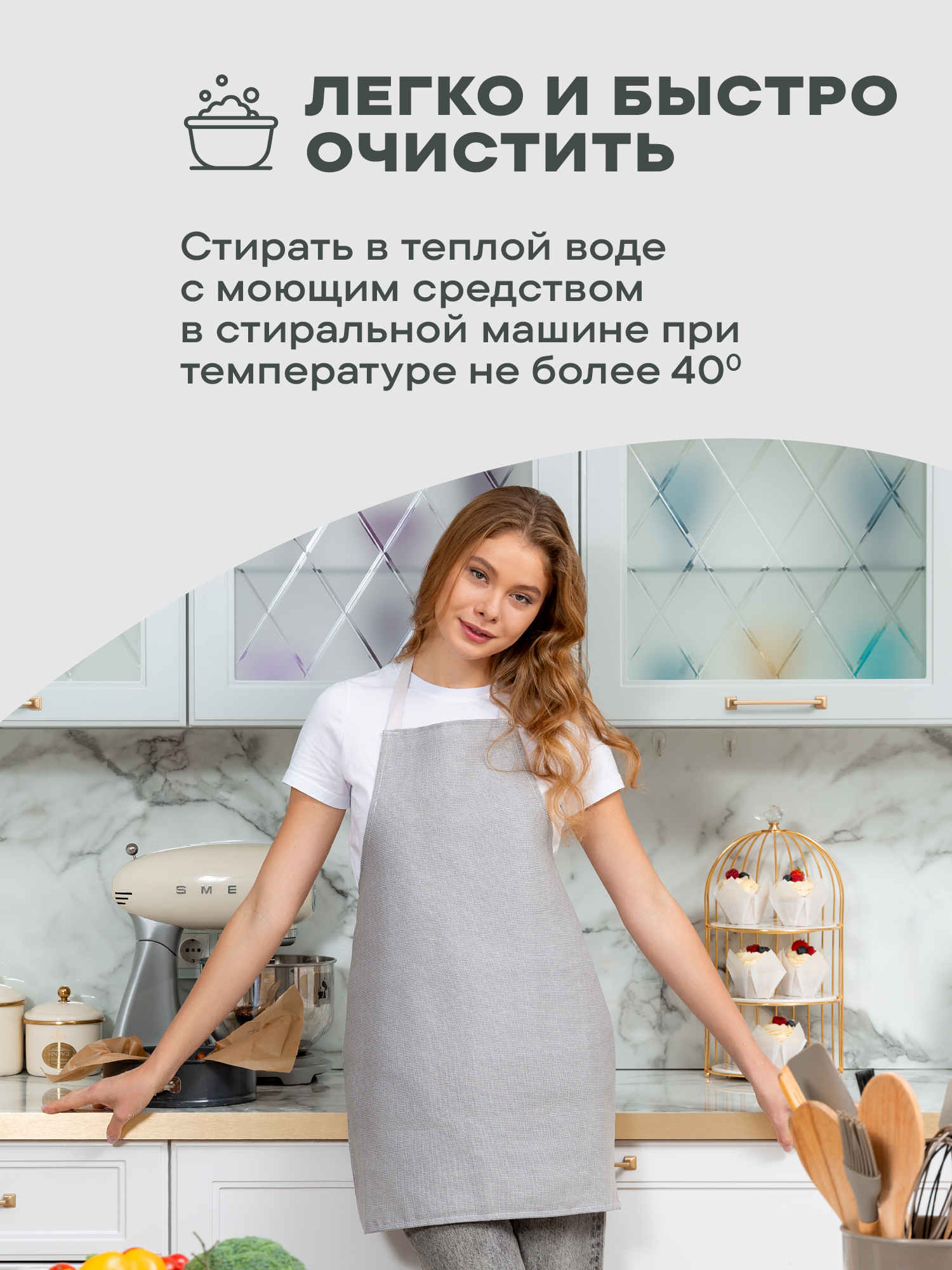 Отзывы на Фартук кухонный женский 60х70 Унисон рис 30004-12 Basic светло-серый