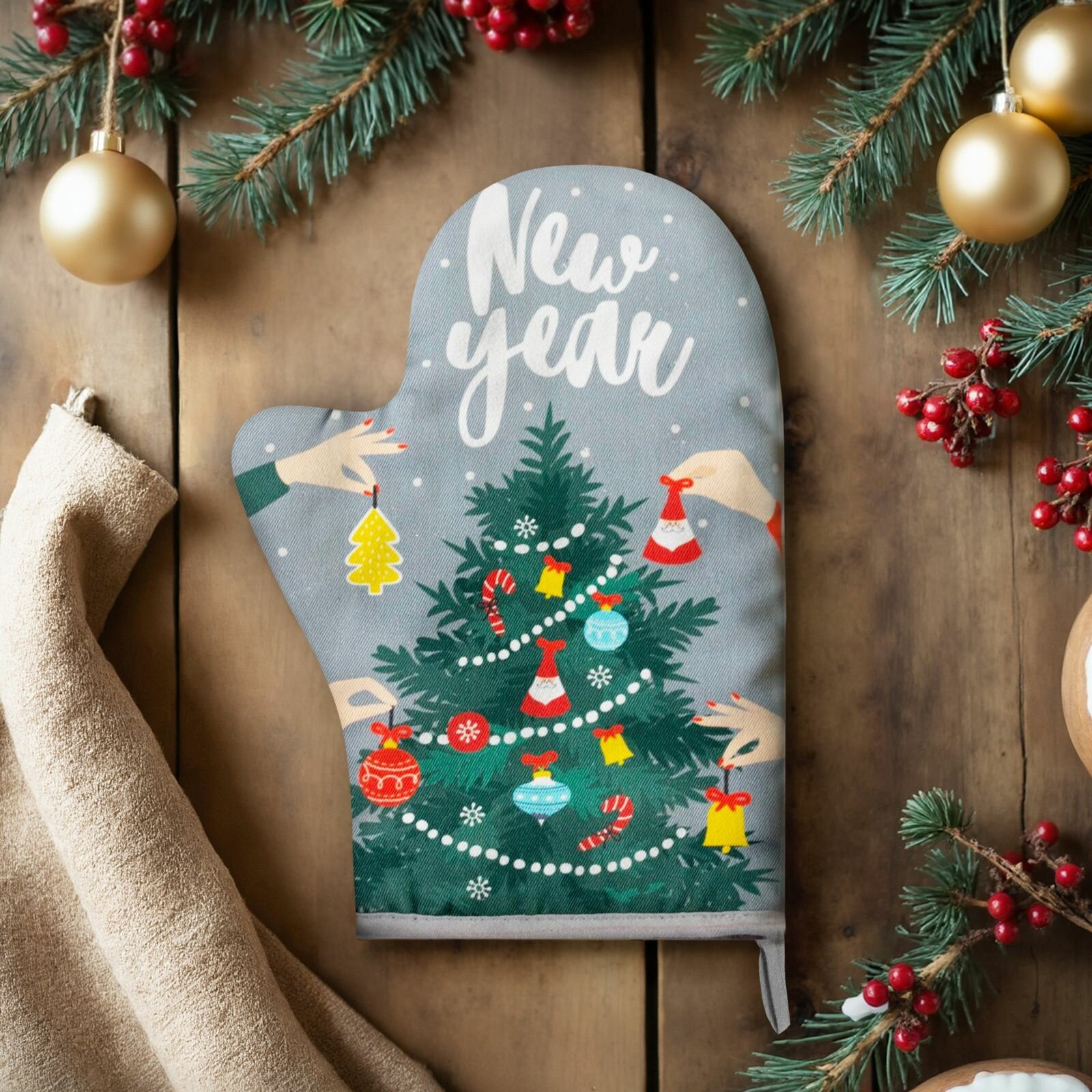 Новый год. Варежка-прихватка "Spruce branches" 20х28см, 100% хлопок, саржа 190 гр/м2, ватин 250г/м2