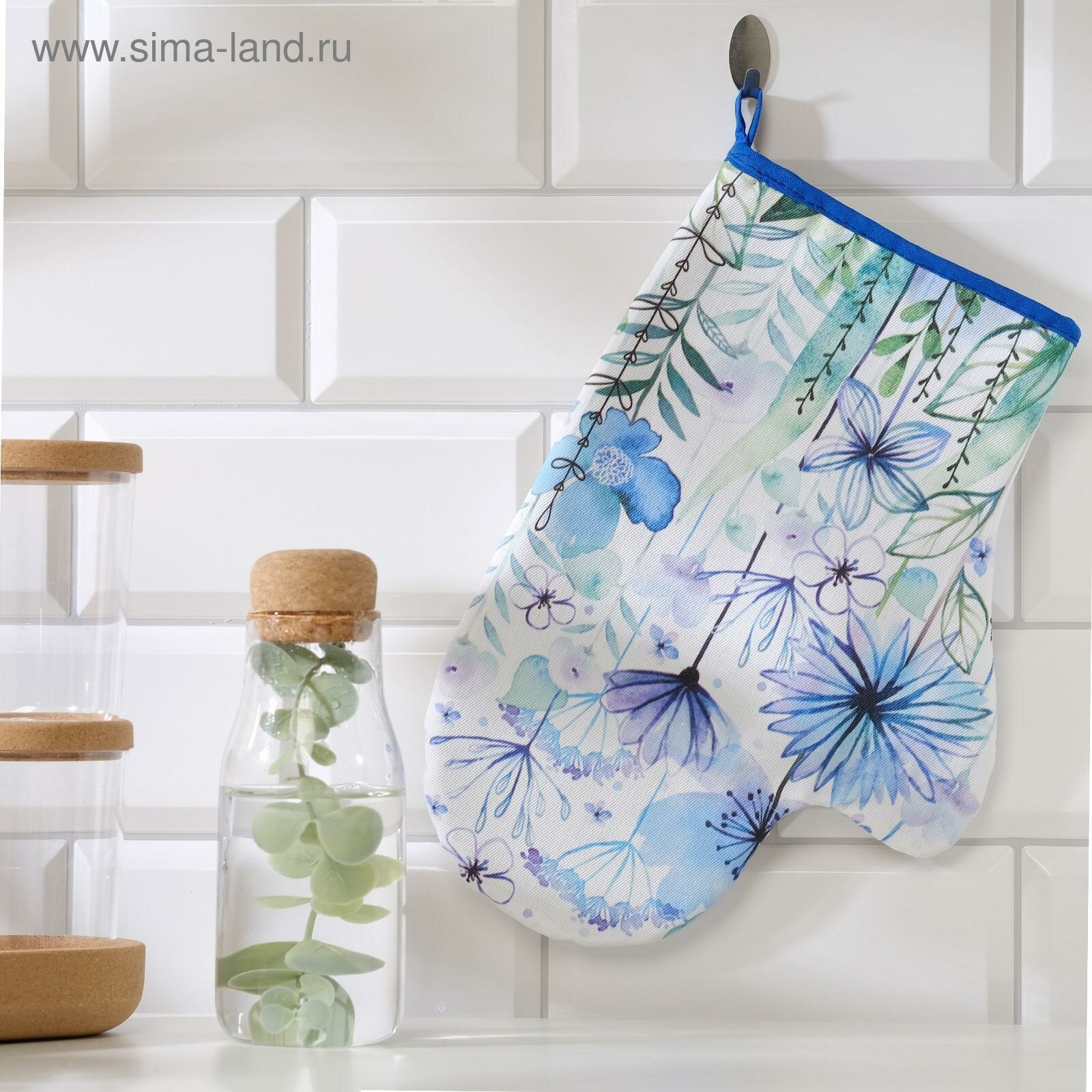 10 цен на Варежка-прихватка "Blue flowers" 20х28см, саржа, 100% х/л, ватин 250г/м2