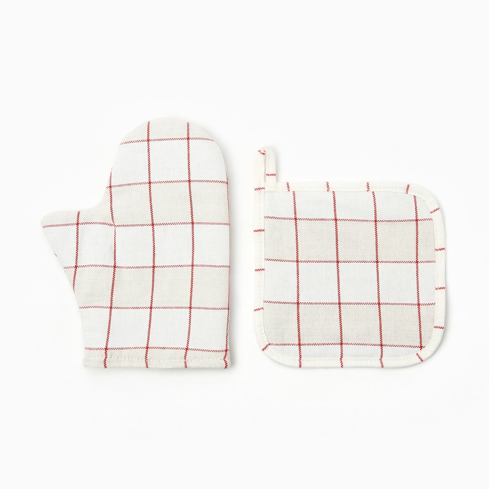 Набор кух. Этель "Клетка": варежка 20х28 см, прихватка 19х19 см, 80% хл, 20% пэ 470 ₽