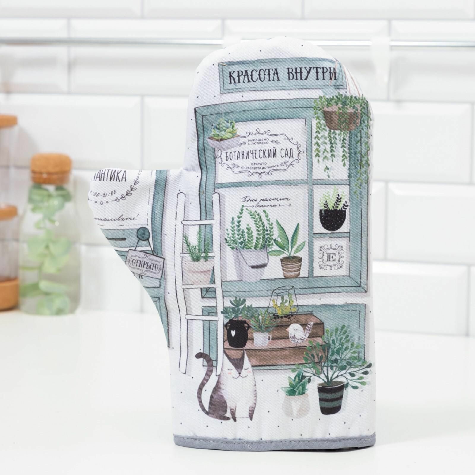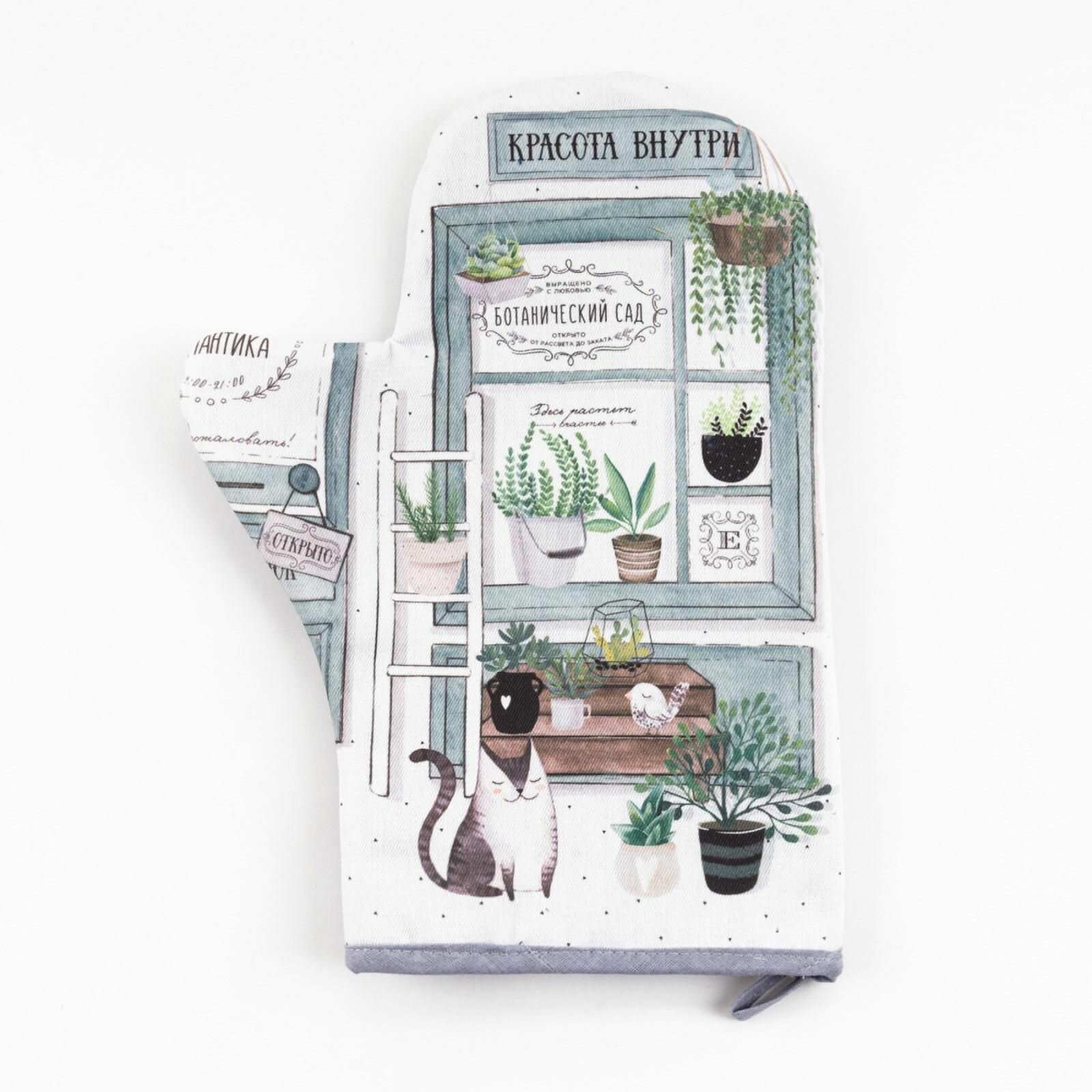 10 цен на Варежка-прихватка "Ботанический сад" 20х28см, саржа, 100% хлопок, ватин 250г/м2
