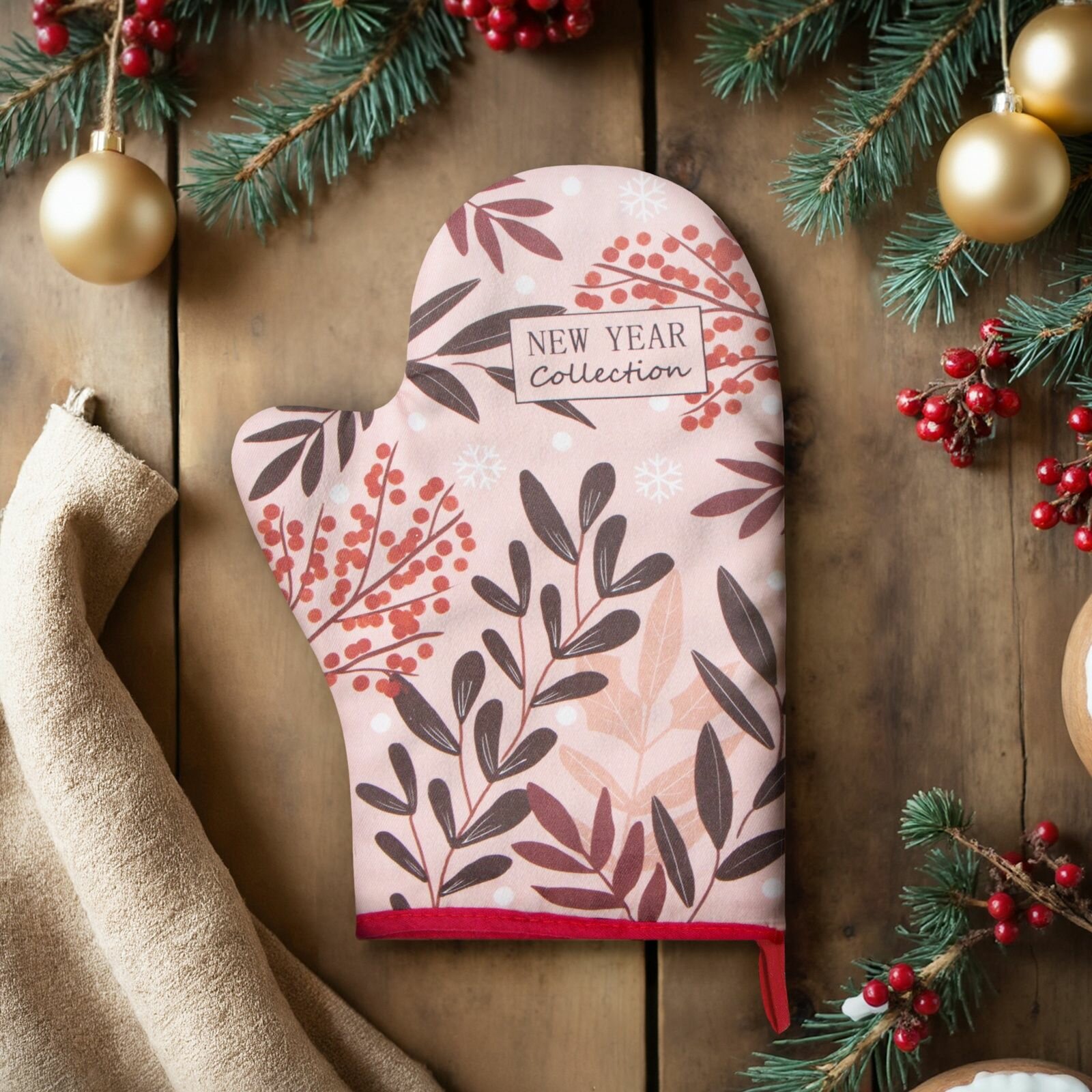 Новый год. Варежка-прихватка "Spruce branches" 20х28см, 100% хлопок, саржа 190 гр/м2, ватин 250г/м2