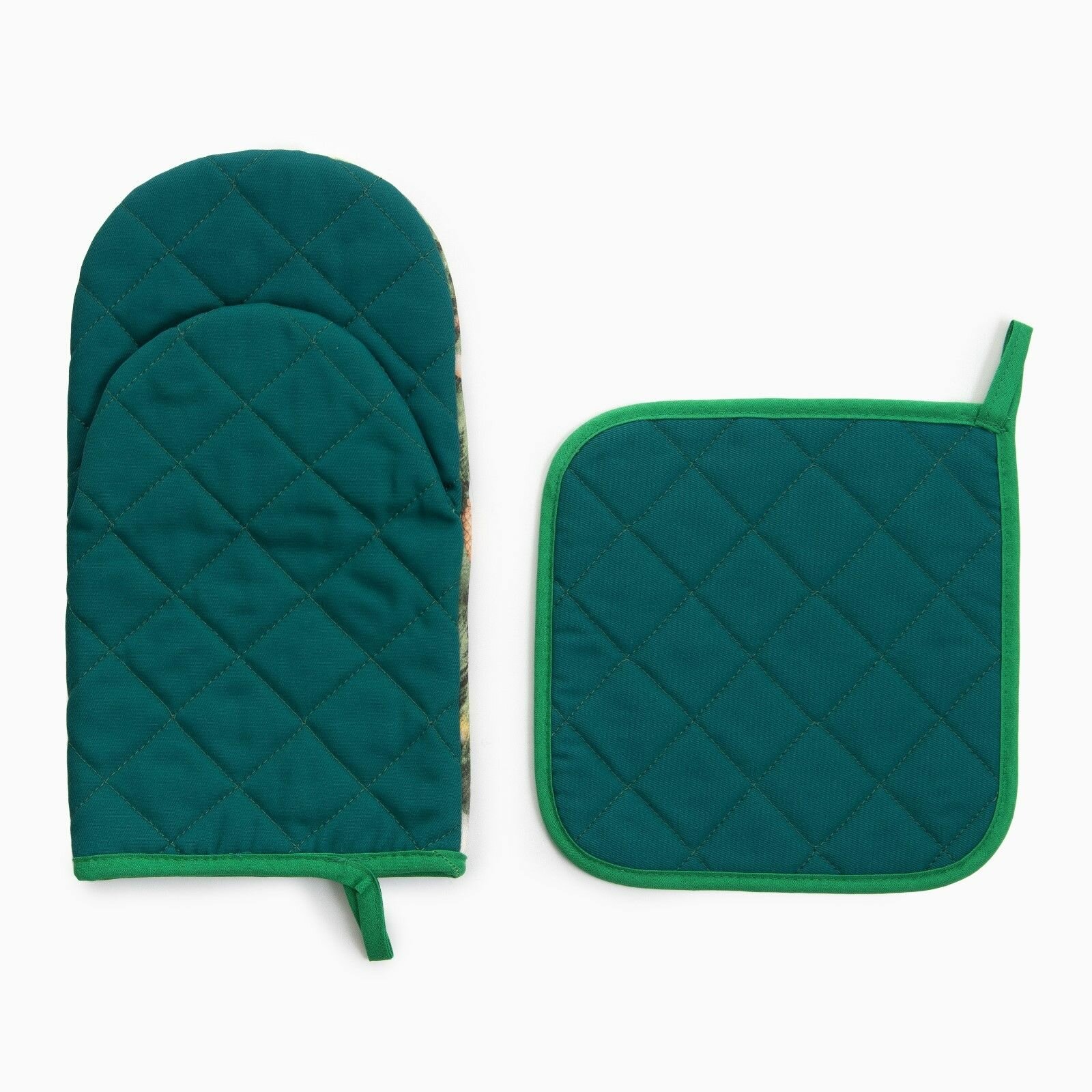 10 цен на Набор кухонный "Сказочная ёлка" Варежка-прихватка новогодняя 15х28см, прихватка 19х19см,100%хл