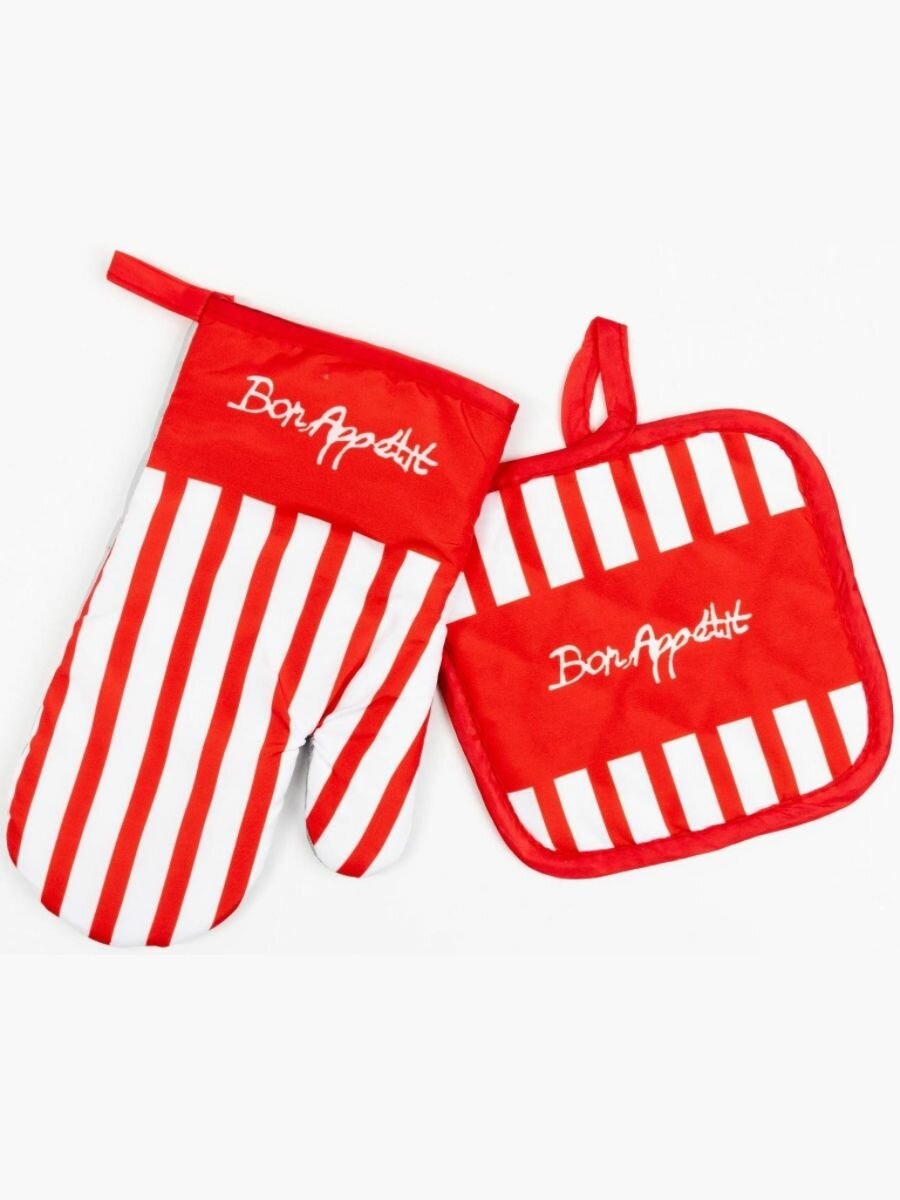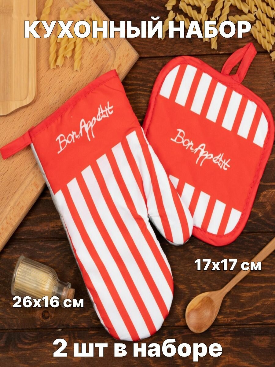 10 цен на Кухонный набор Доляна Bon appetit прихватка 17*17 см, варежка-прихватка 26*16 см, 100% п/э