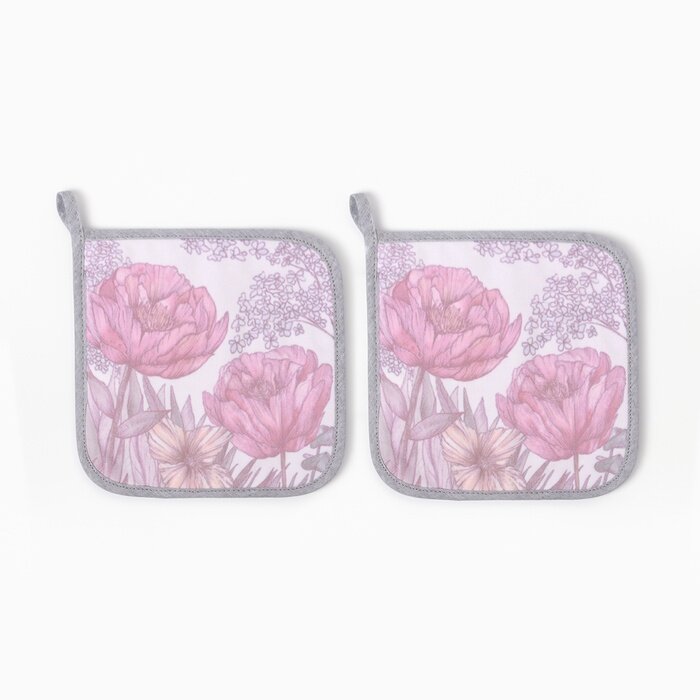 Набор прихваток Этель Рoppy fields 2 шт, 19х19 саржа,100% х/л, ватин 250г/м2 информация: