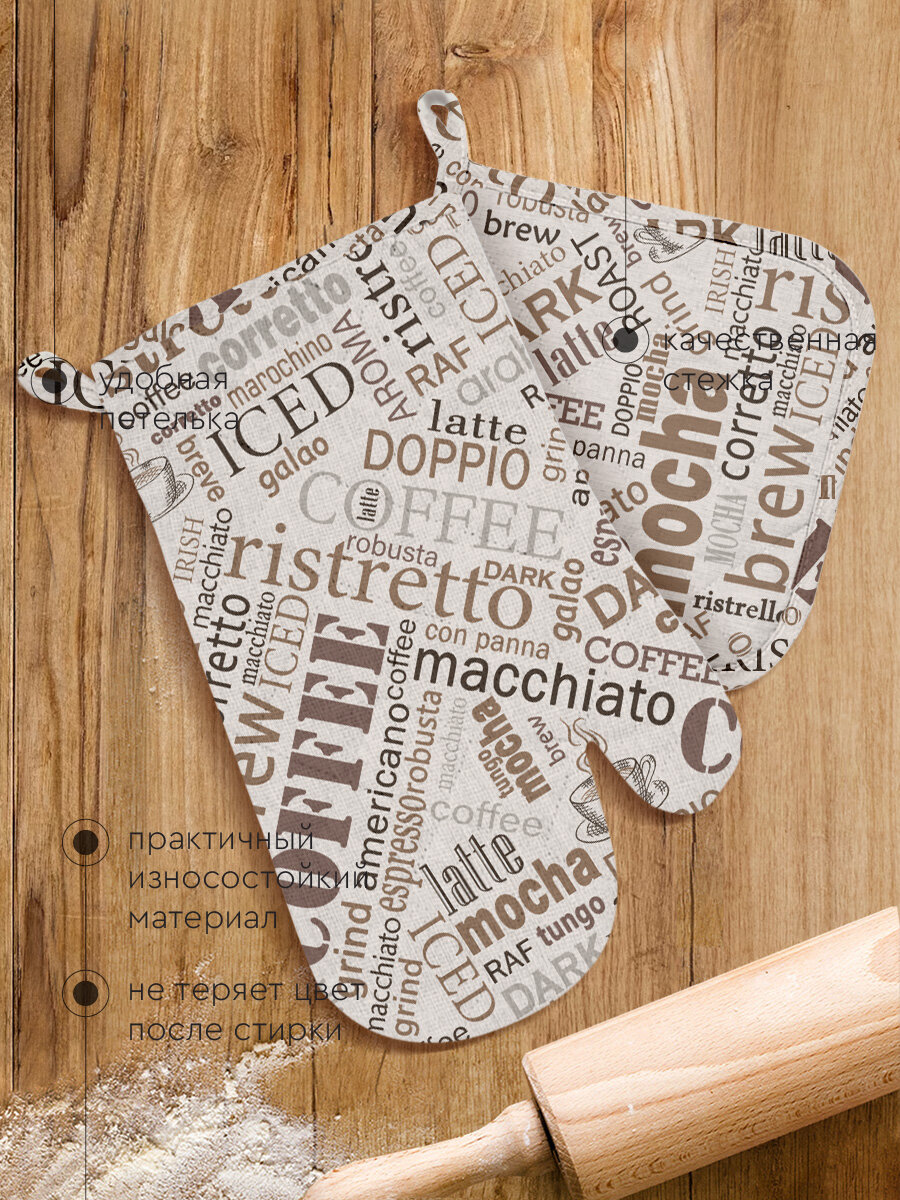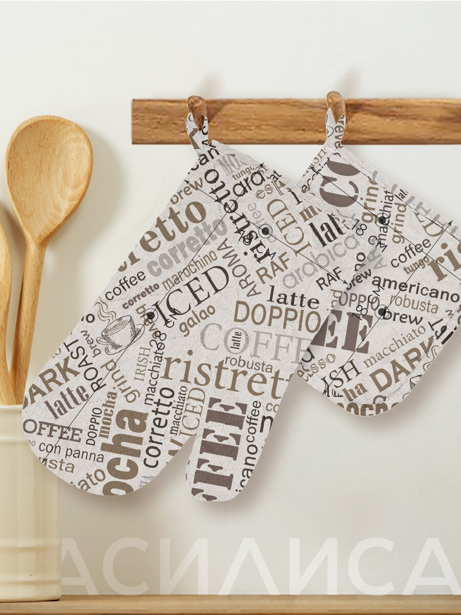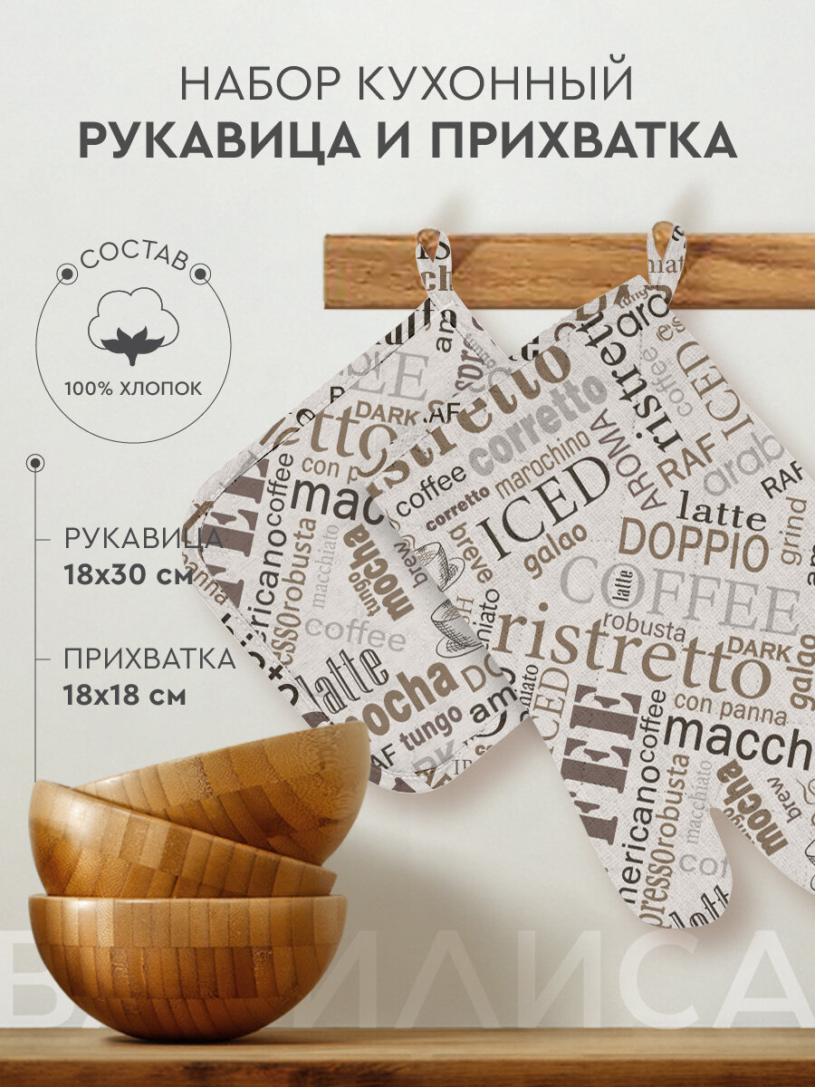 Набор кухонный Василиса рукавица и прихватка, рогожка, 100% хлопок, Кофе информация: