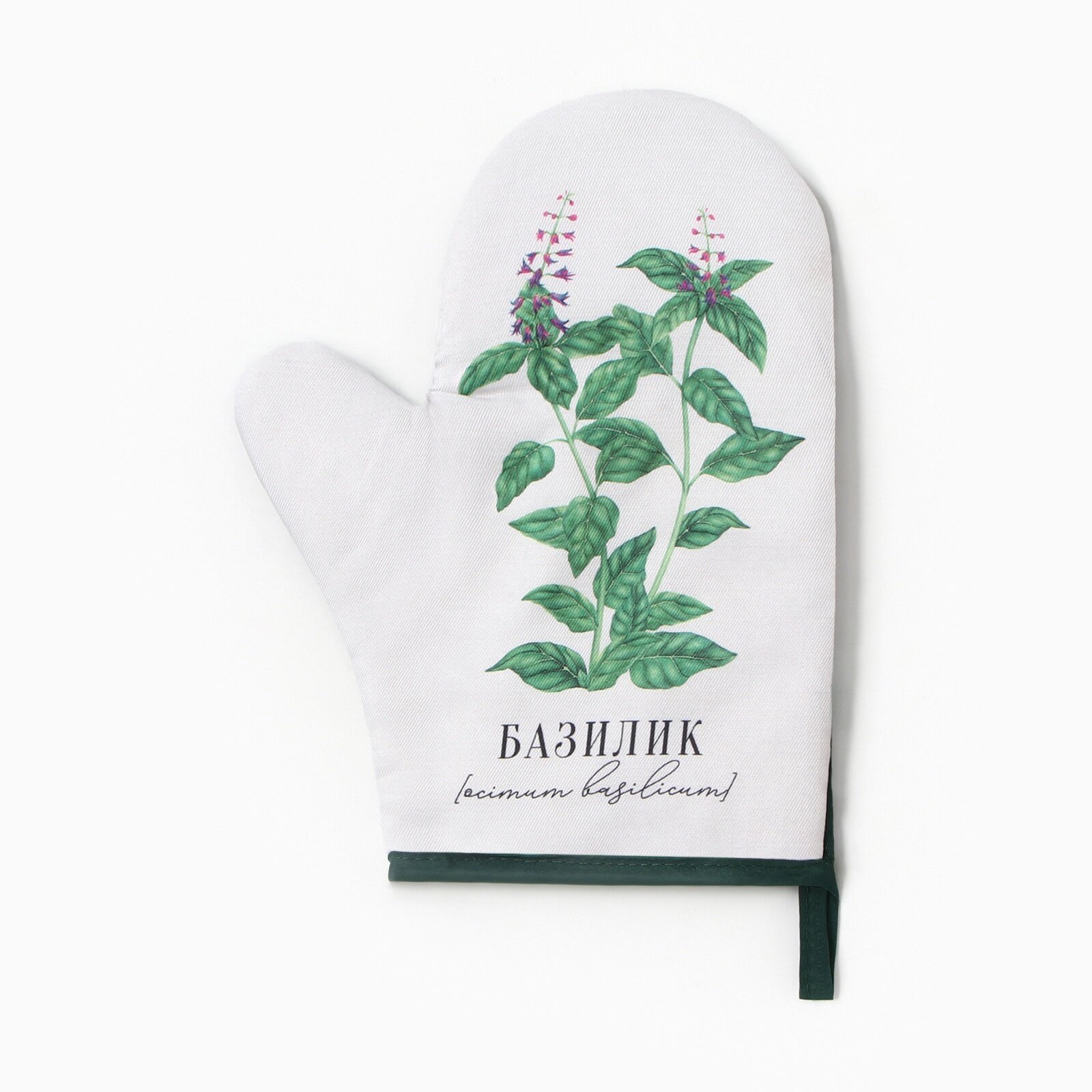 10 цен на Варежка-прихватка "Базилик" 20х27см, белая/зеленая, 100% полиэстер