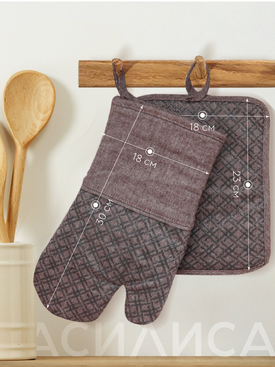 10 цен на Набор кухонный Василиса Рукавица и прихватка с карманом, хлопок 100%, Коричневый