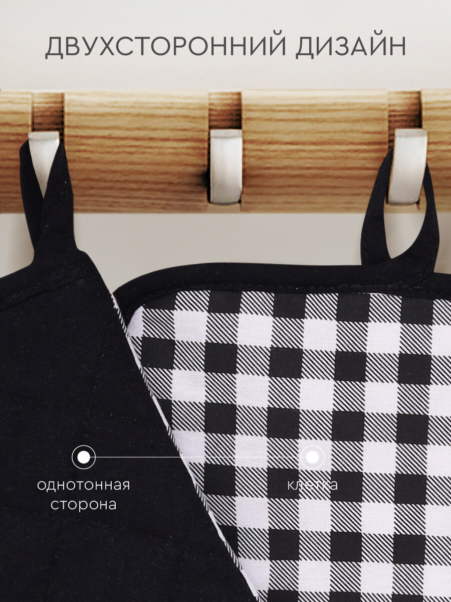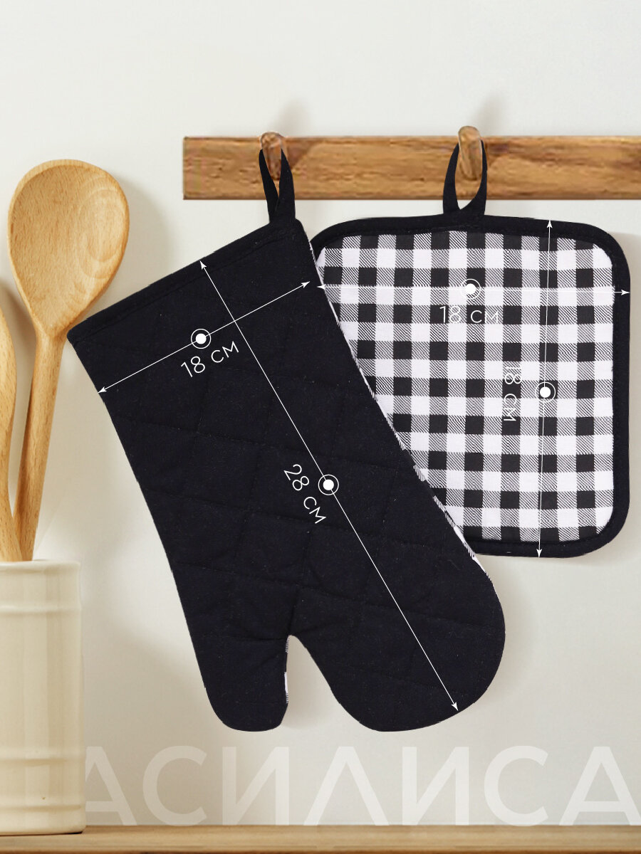 Отзывы на Набор кухонный Василиса Рукавица и прихватка, хлопок 100%, Клетка, Черно-белый