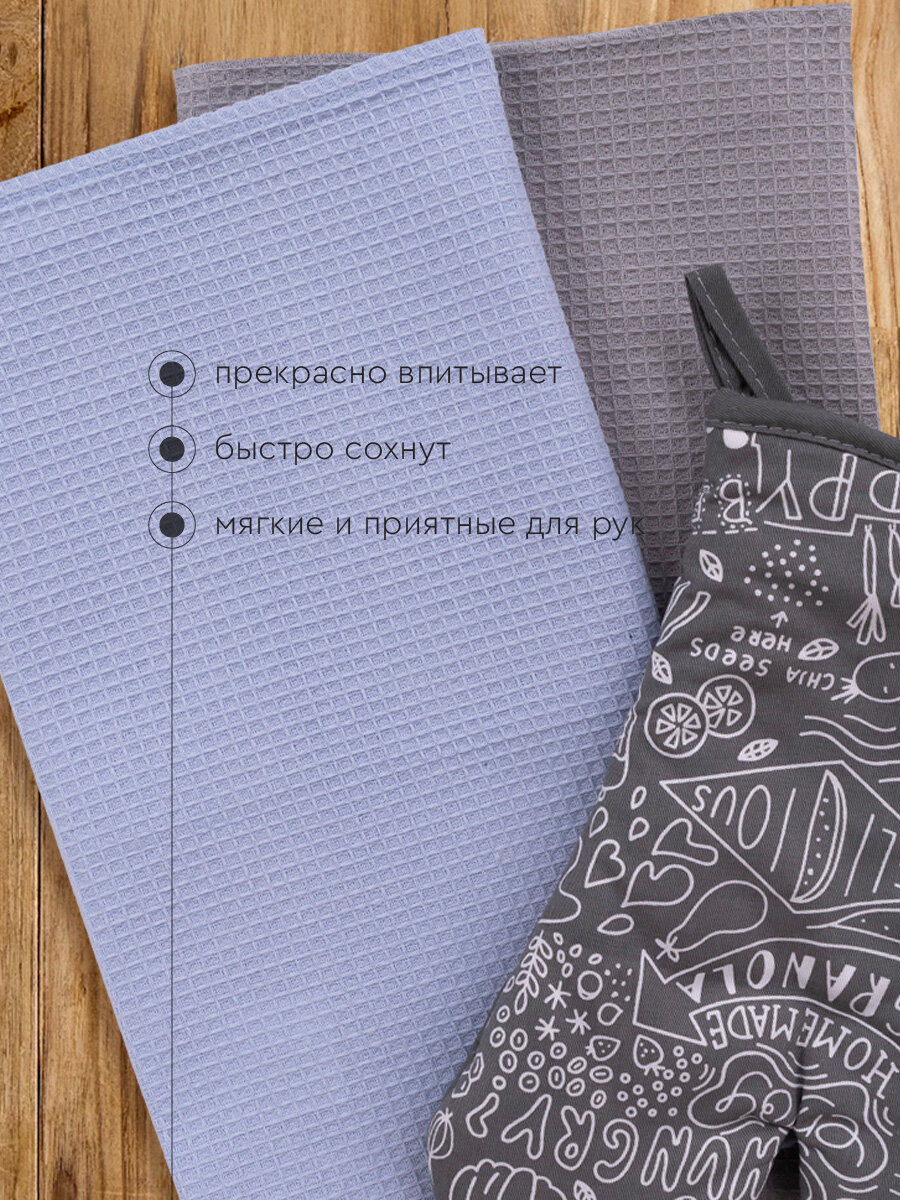 Отзывы на Набор кухонный Василиса Рукавица и 2 вафельных полотенца, хлопок 100%, Granola