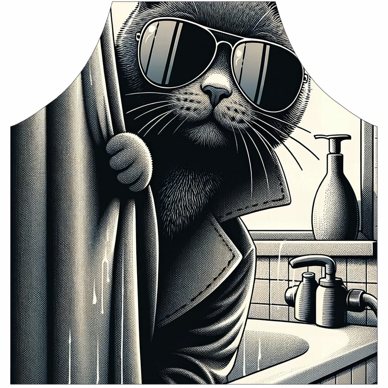 Фартук кухонный "Кот шпион в ванной", универсальный размер для женщин и мужчин, JoyArty информация: