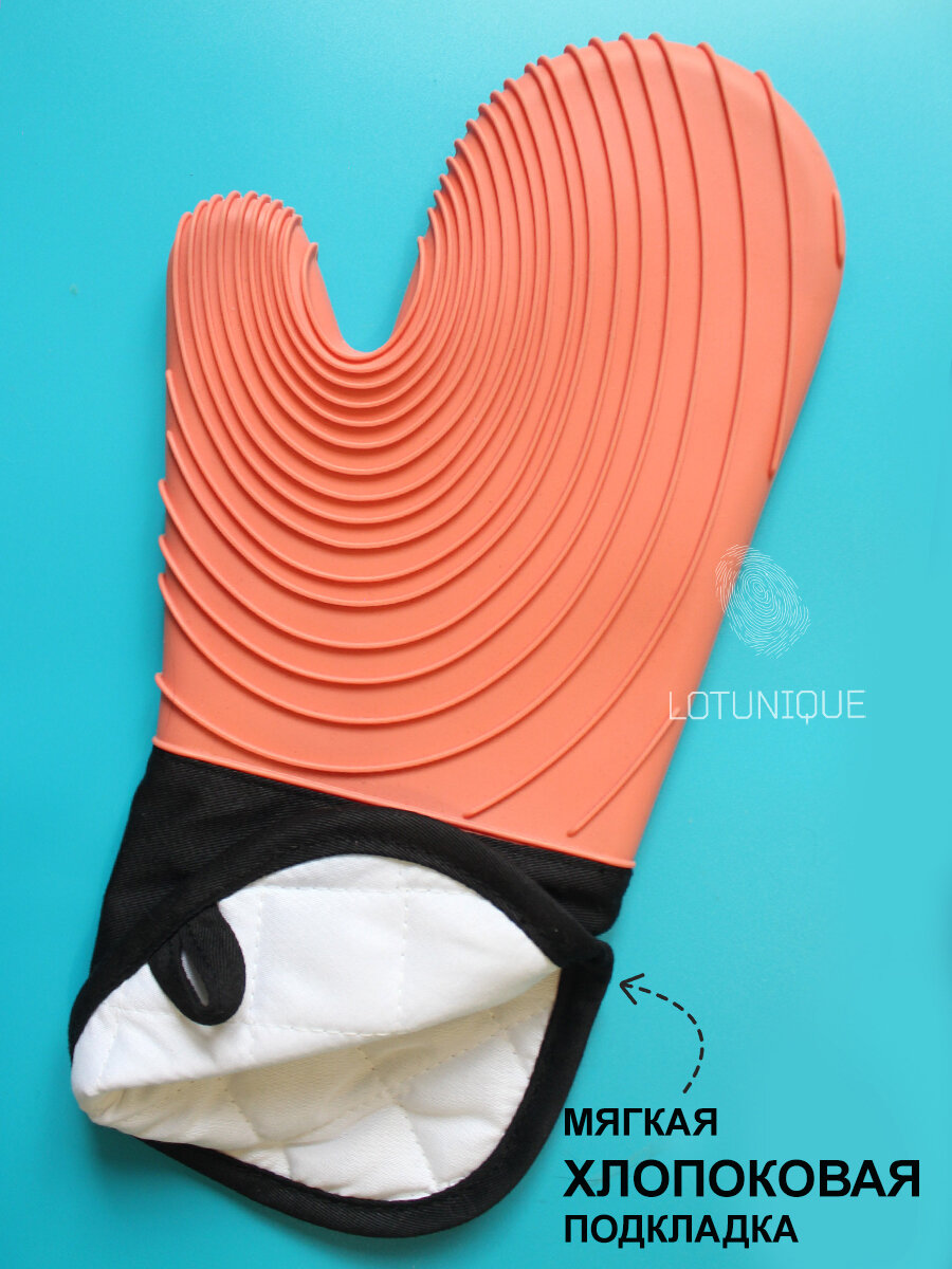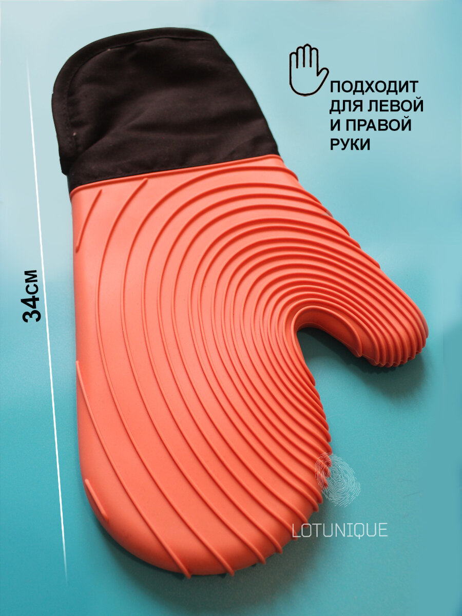 10 цен на Варежка-прихватка, силиконовая, термостойкая, рыжая, длина 34см, ширина 17.5см