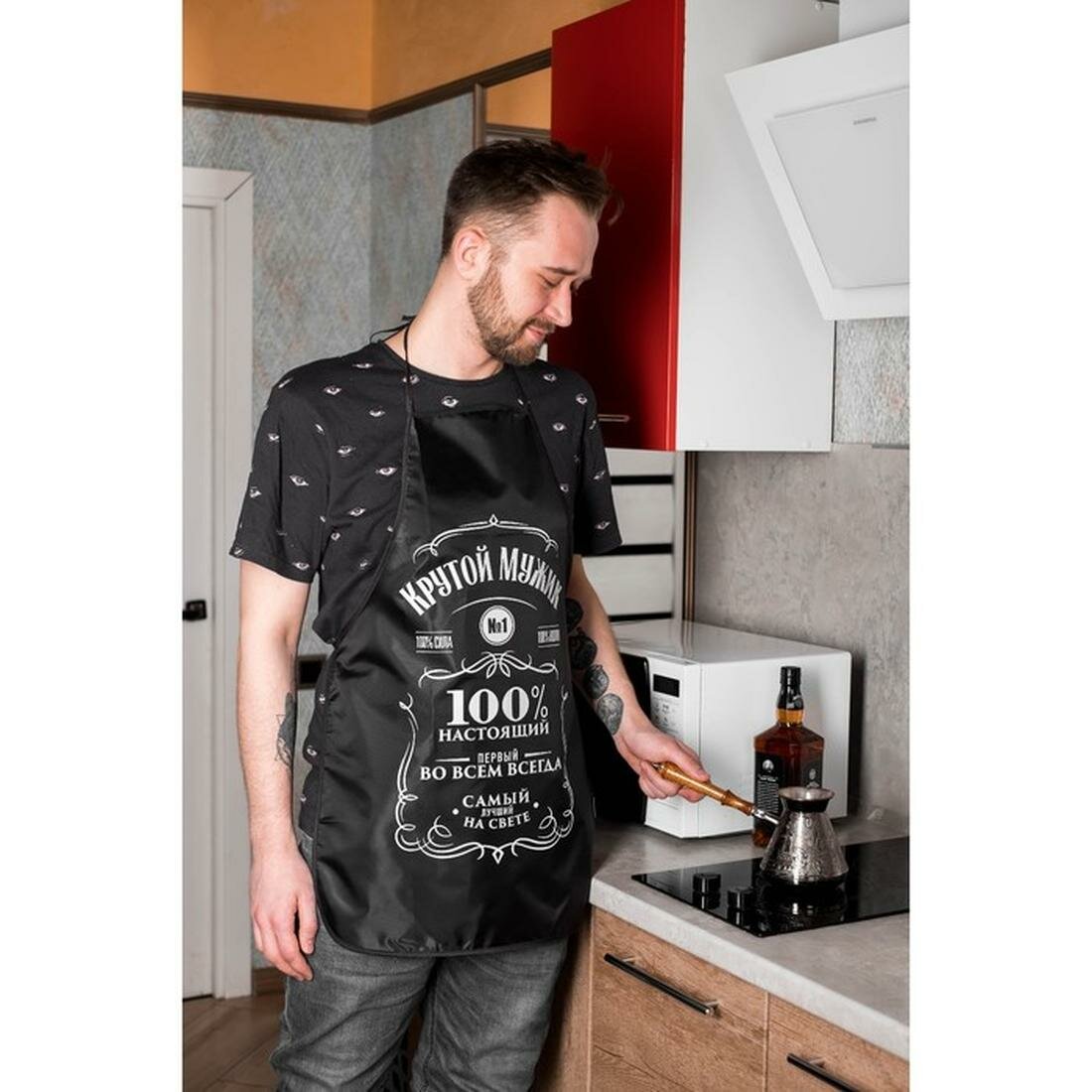 10 цен на NAZAMOK Кухонный фартук "Крутой мужик", состав: текстиль, цвет: чёрный