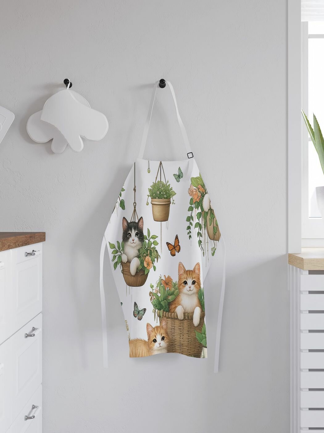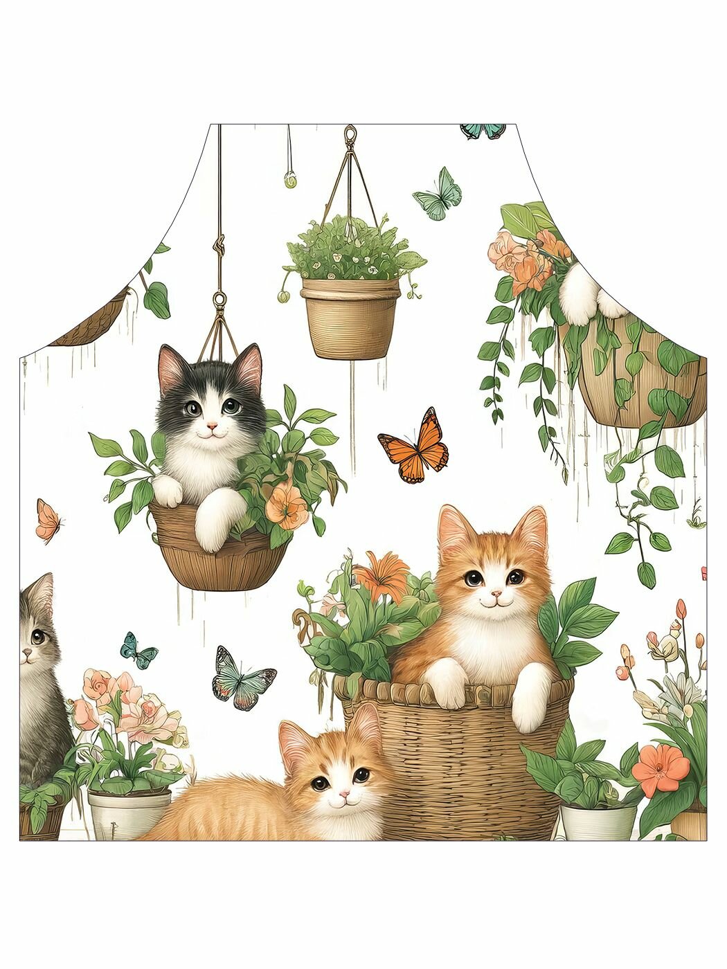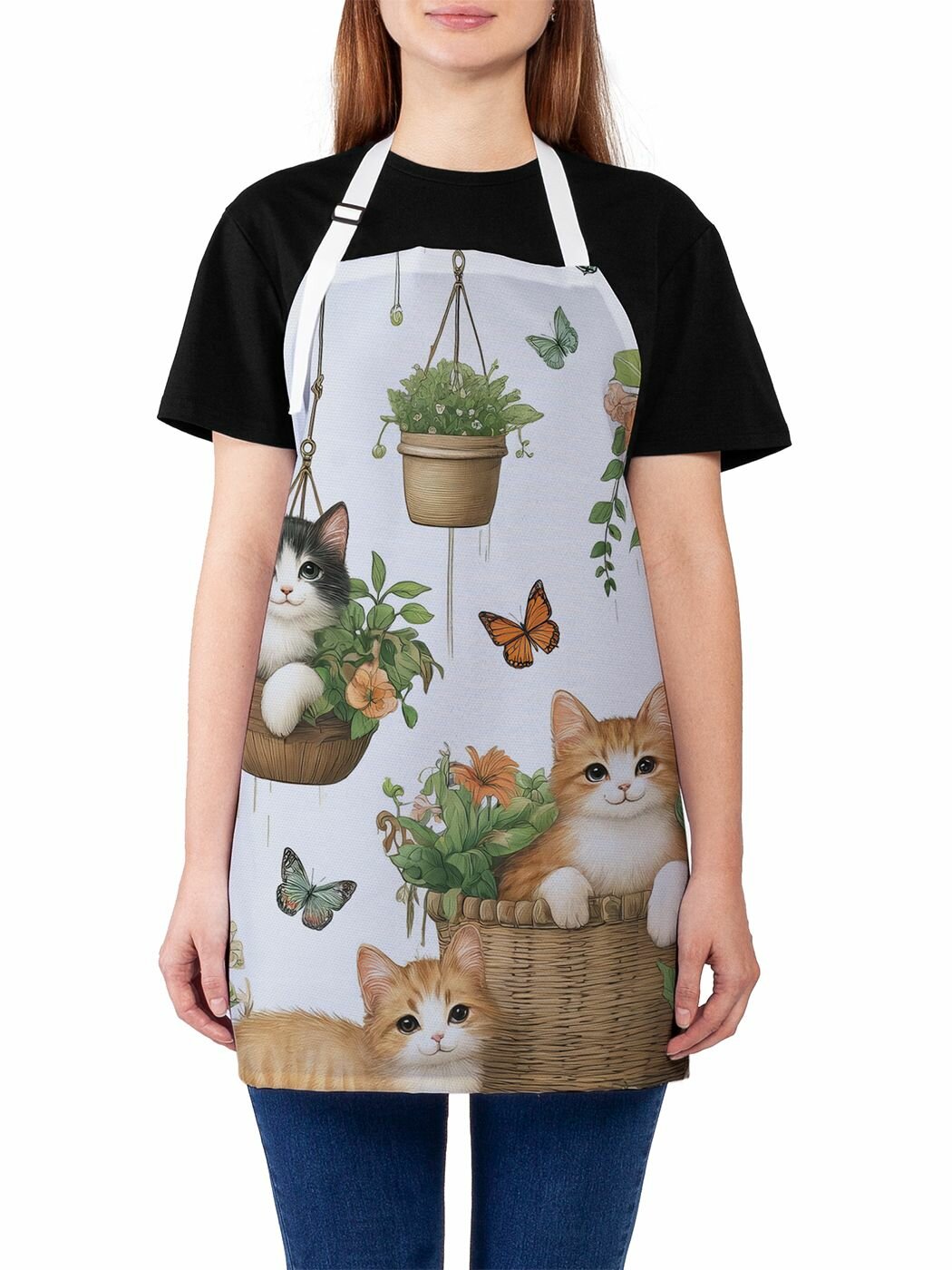 Фартук кухонный "Котики в горшках", универсальный размер для женщин и мужчин, JoyArty