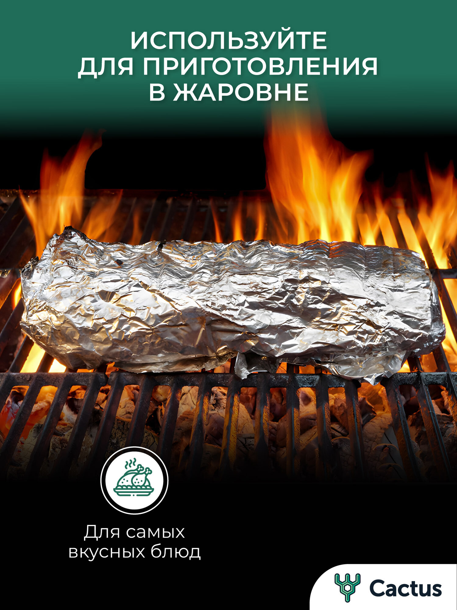Отзывы на Фольга пищевая для гриля, запекания, для кухни алюминиевая прочная для приготовления пищи 20 мкм, 50 м х 29 см, Cactus