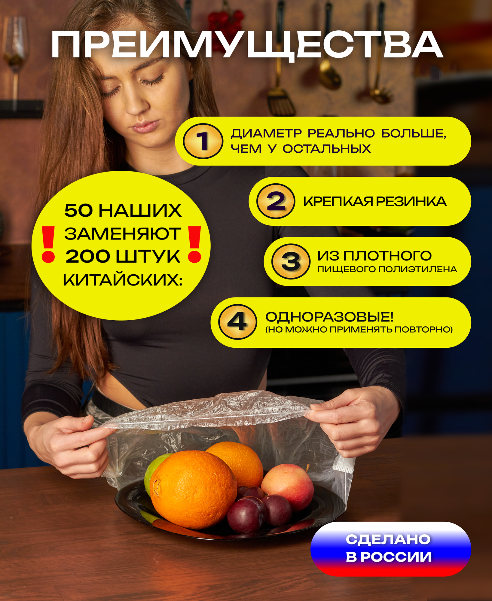 Пакет крышки на резинке большие, пищевой полиэтилен, чехол с резинкой для любой посуды, тарелок в холодильник, 50 шт. информация: