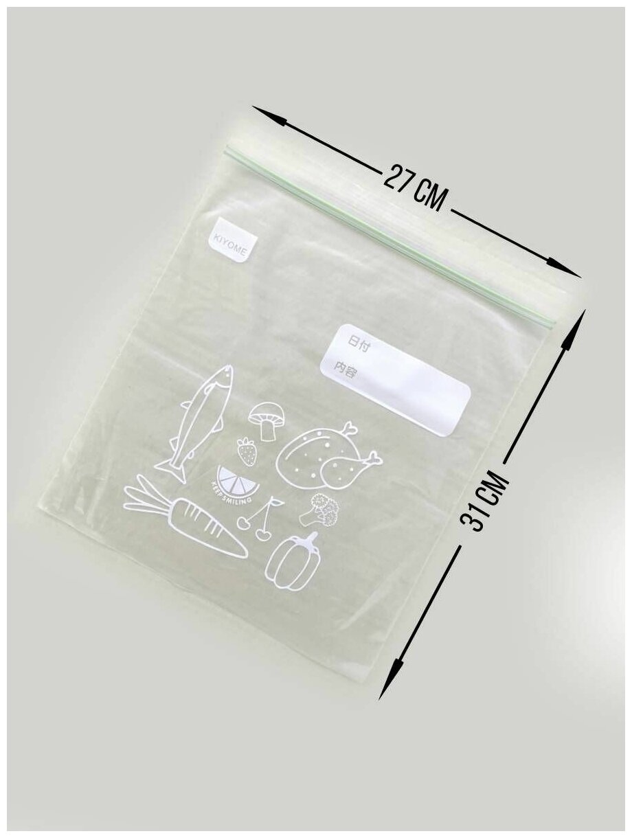 Набор Zip-Lock пакетов для заморозки и хранения продуктов, размер L - 27х31 см, 10 шт. информация: