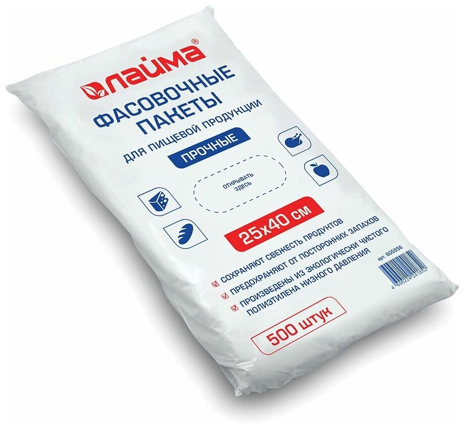 Пакеты фасовочные Лайма 25х40 см, 10 мкм, ПНД, 500 шт/уп информация: