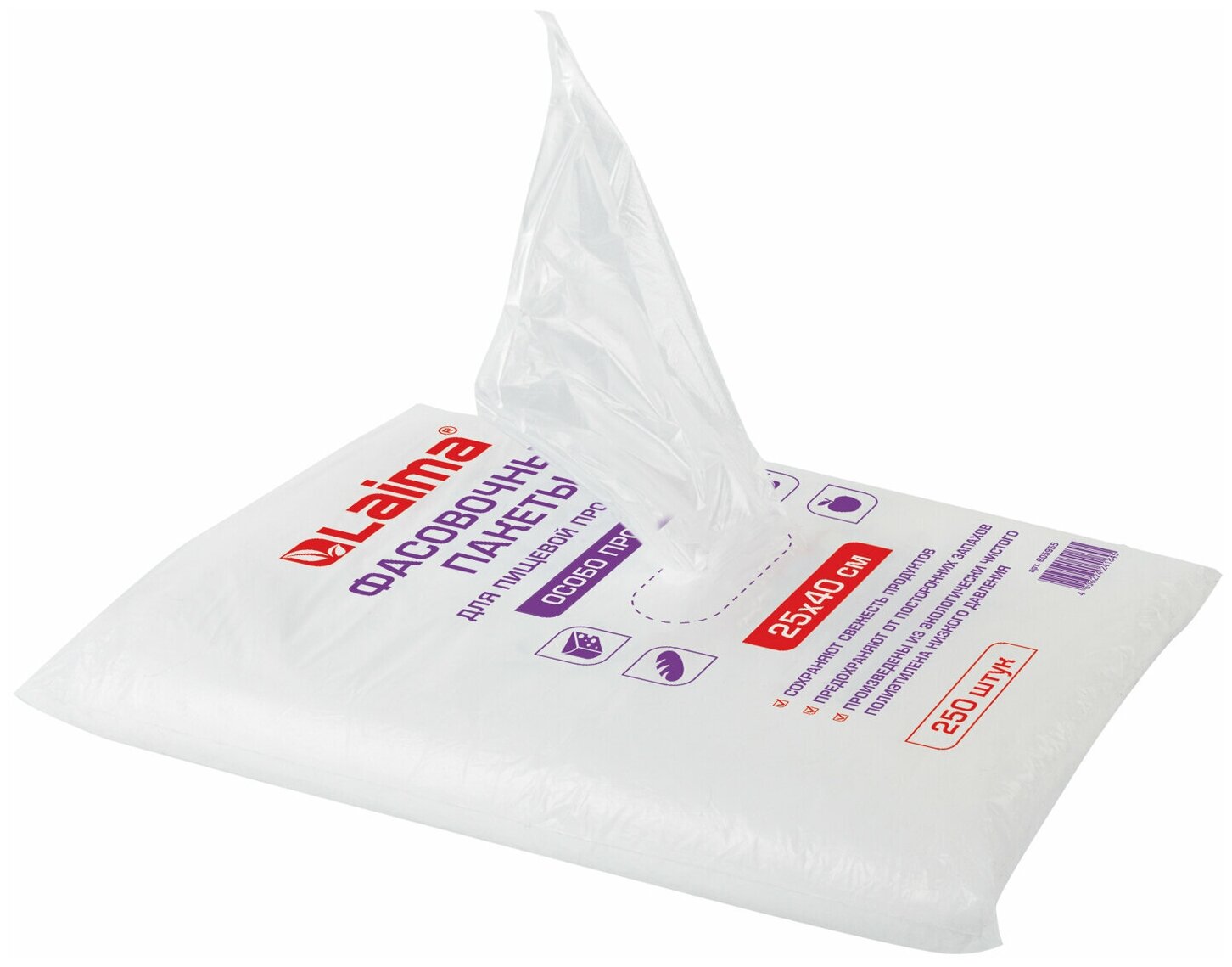 Пакеты фасовочные 25х40 см, комплект 250 шт, ПНД, 15 мкм, особо прочные, евроупаковка, LAIMA, 605955 информация: