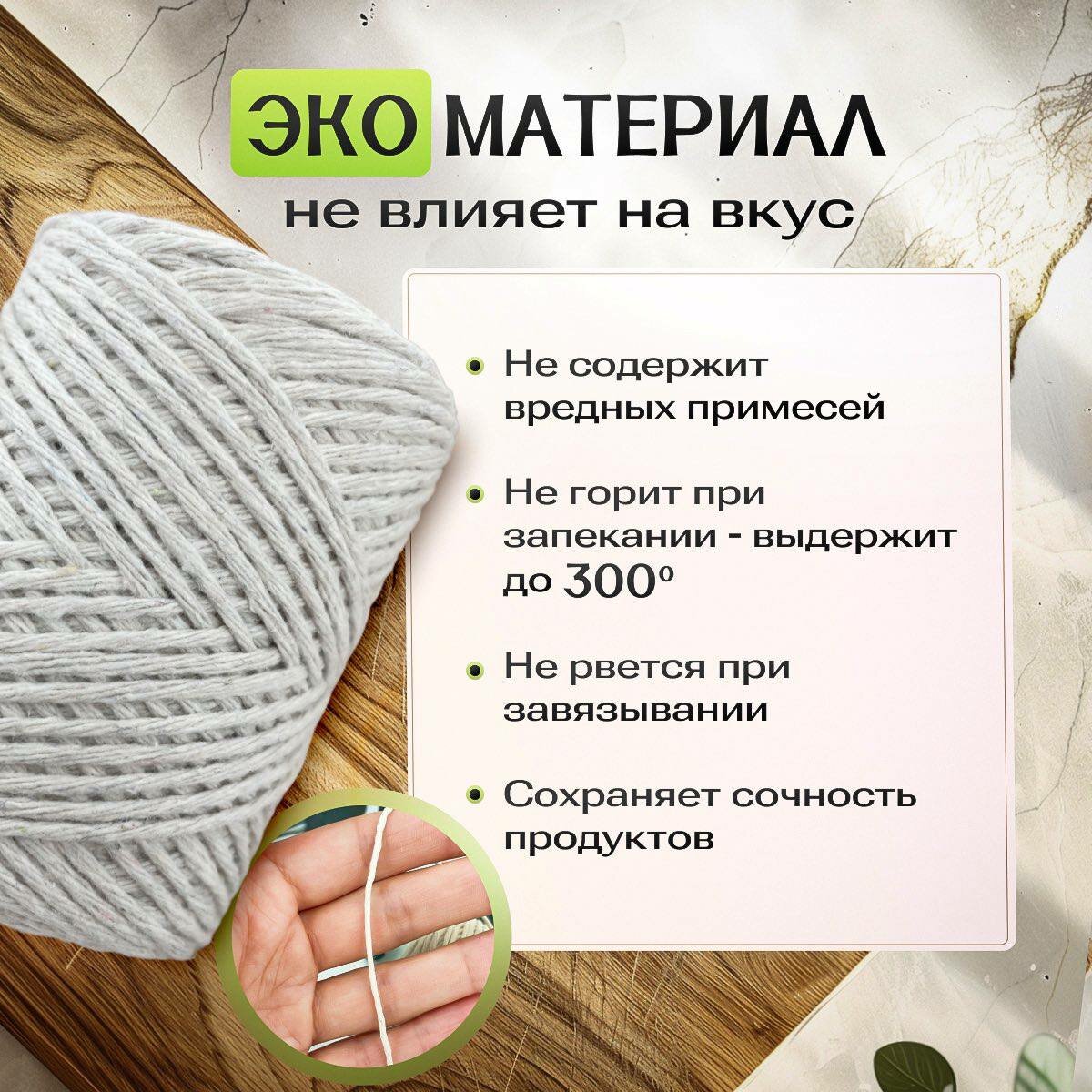 10 цен на Нить кулинарная 1,5 мм, 100 метров, хлопок / для запекания/ для копчения/ для колбасы