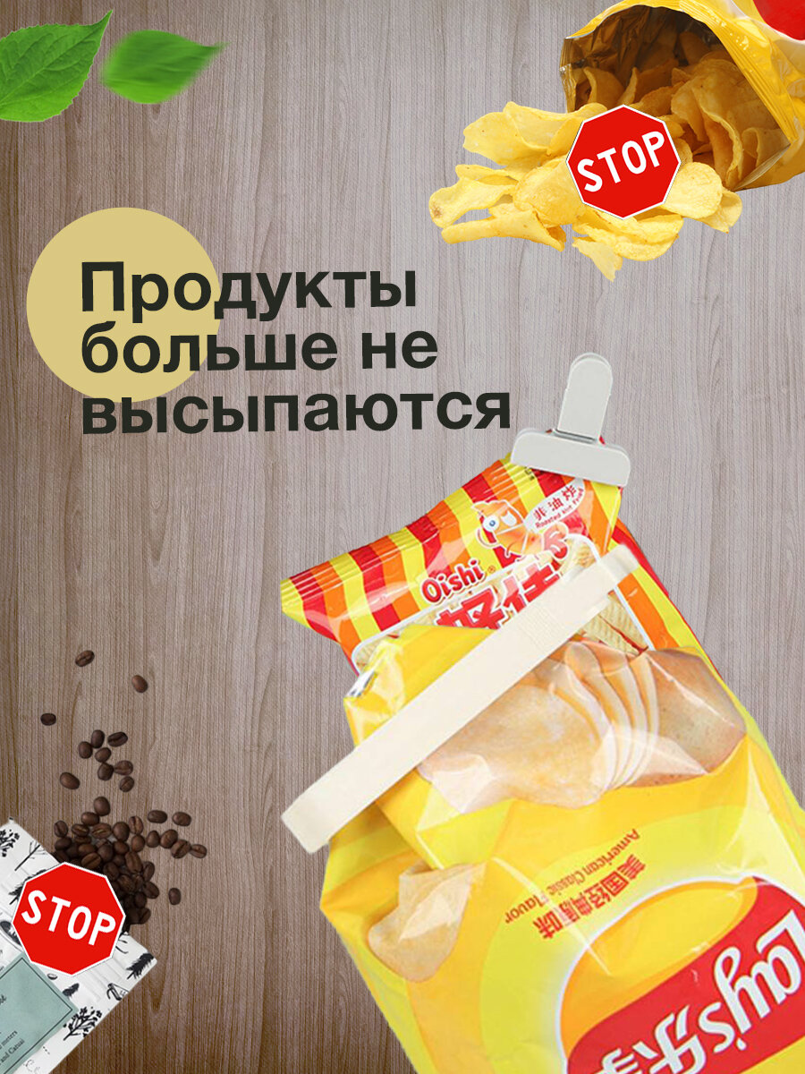10 цен на Зажимы для пакетов кухонные для хранения продуктов пластиковые универсальные набор 8 штук