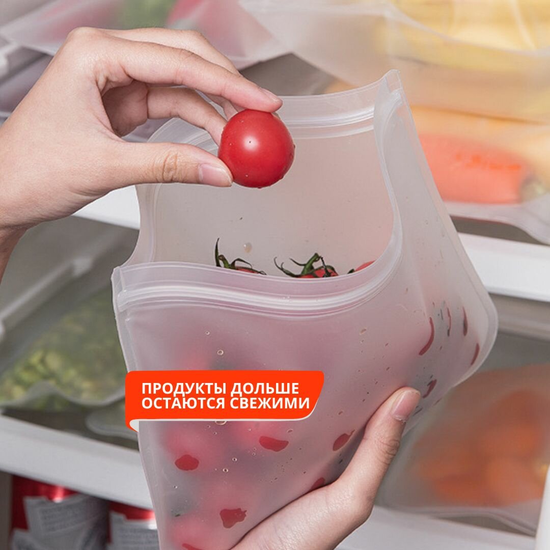 Силиконовый пакет с замком 20*28 см - 4 шт / Пакеты для заморозки и хранения 500 ₽
