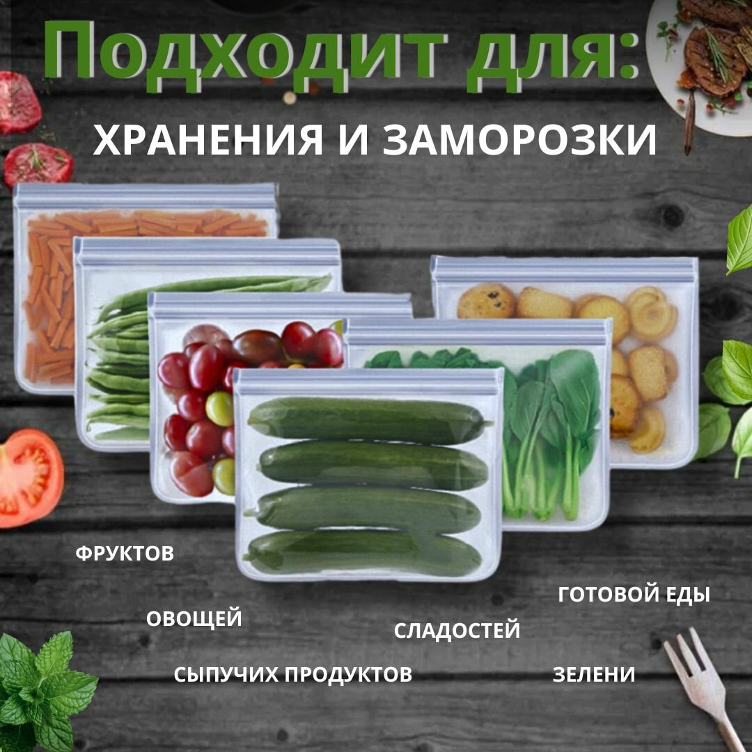 Пакеты для заморозки ( 28x26 см +20x28 см ), Силиконовые пакеты для хранения продуктов 270 ₽