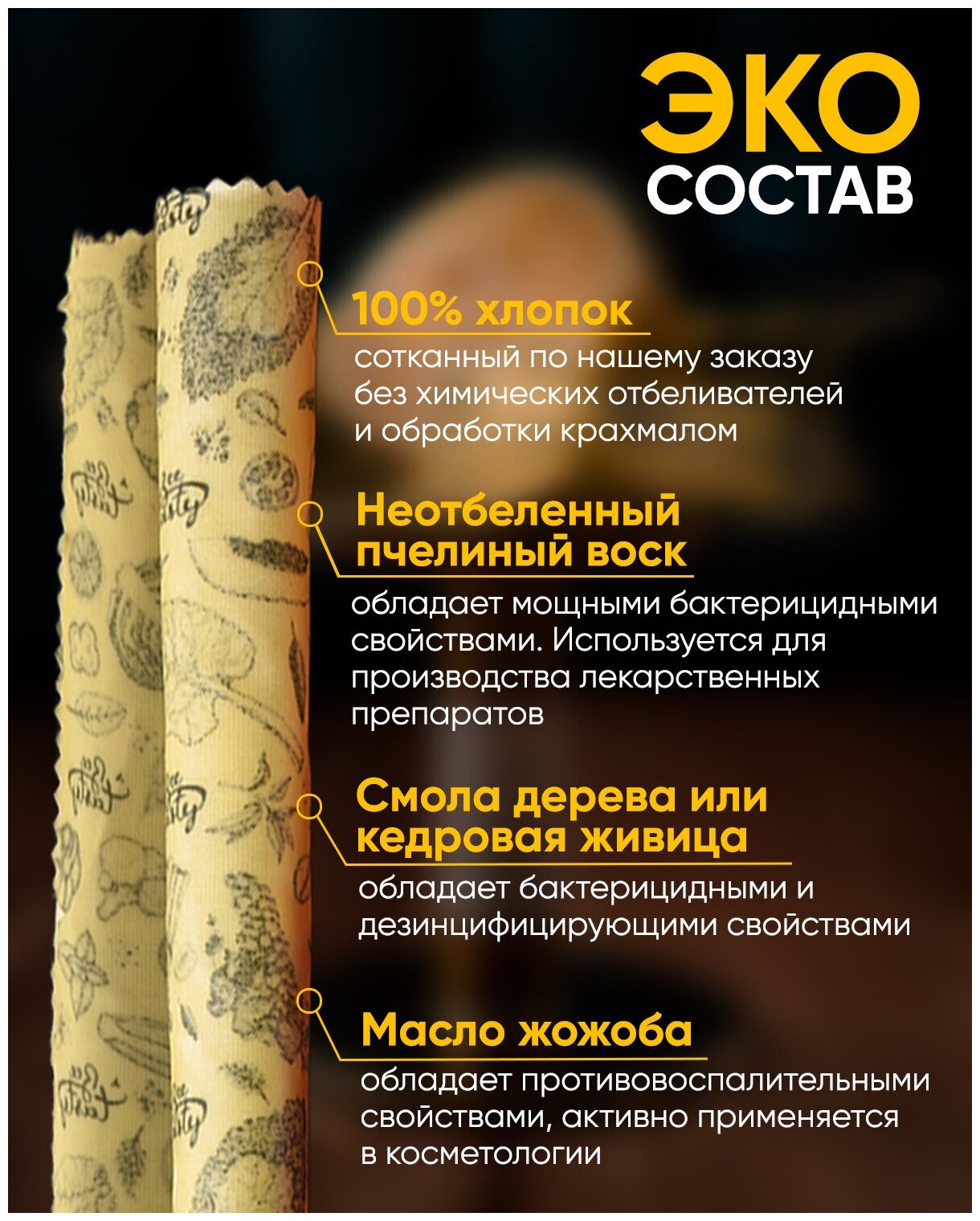 Салфетки восковые, Bee Tasty, для хранения продуктов, S, M, L, 3 шт информация: