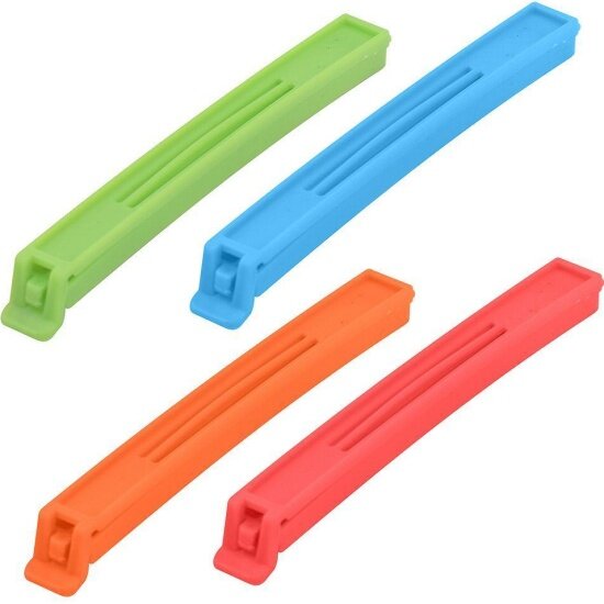 Зажимы для пакетов Мультидом "Клип", пластик, 4 шт. упаковка, 11см, 4 цвета