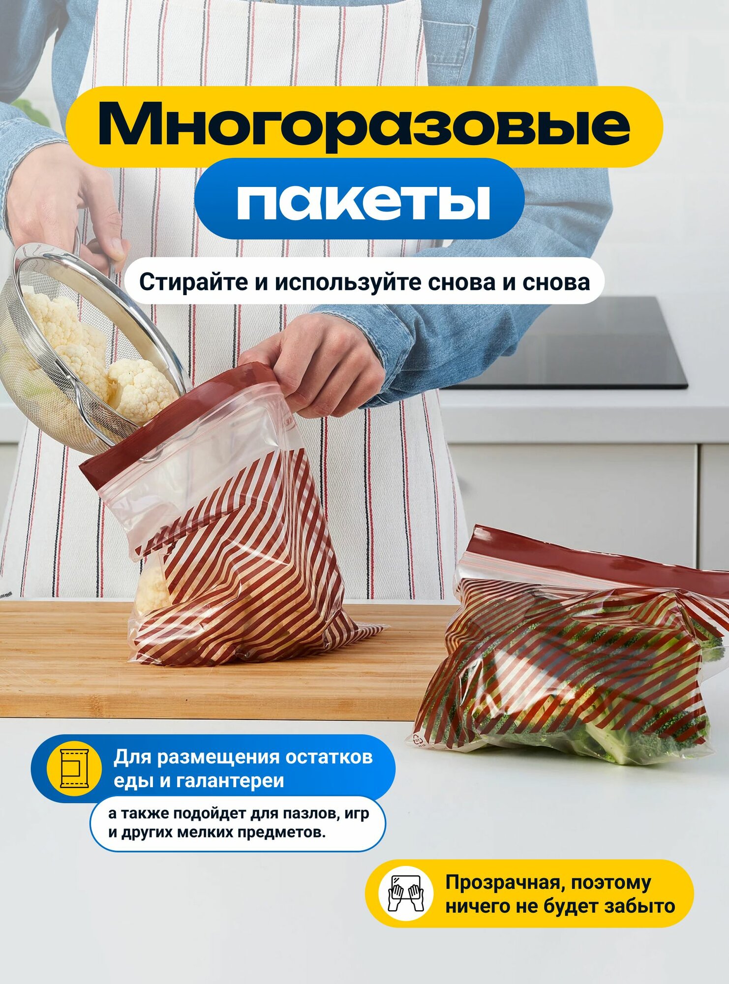 Пакеты для заморозки и хранения продуктов икеа истад, черный, желтый, 60 шт. Пакеты с застежкой 951 ₽