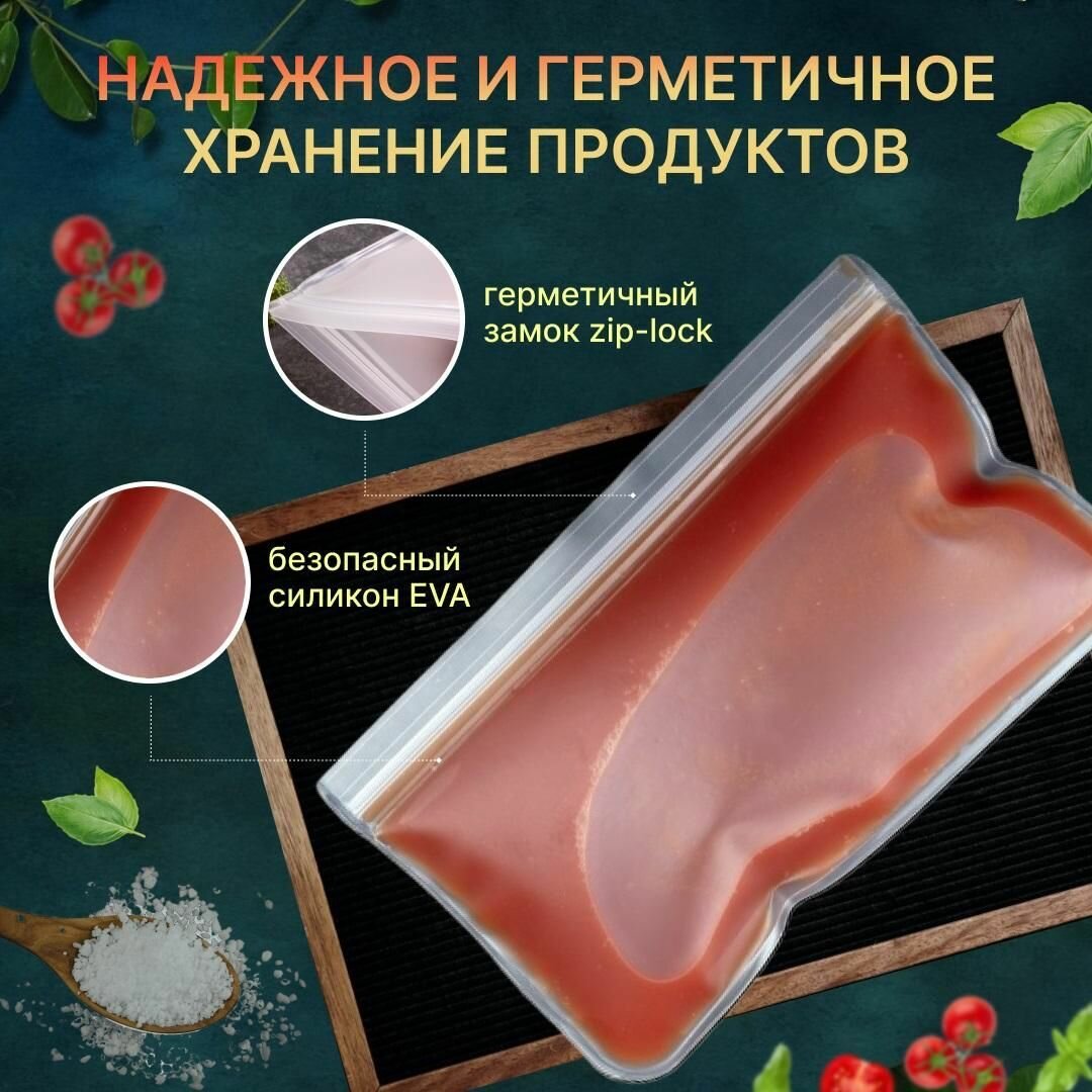 10 цен на Силиконовые пакеты для заморозки и хранения продуктов с замком, 4 шт. в комплекте