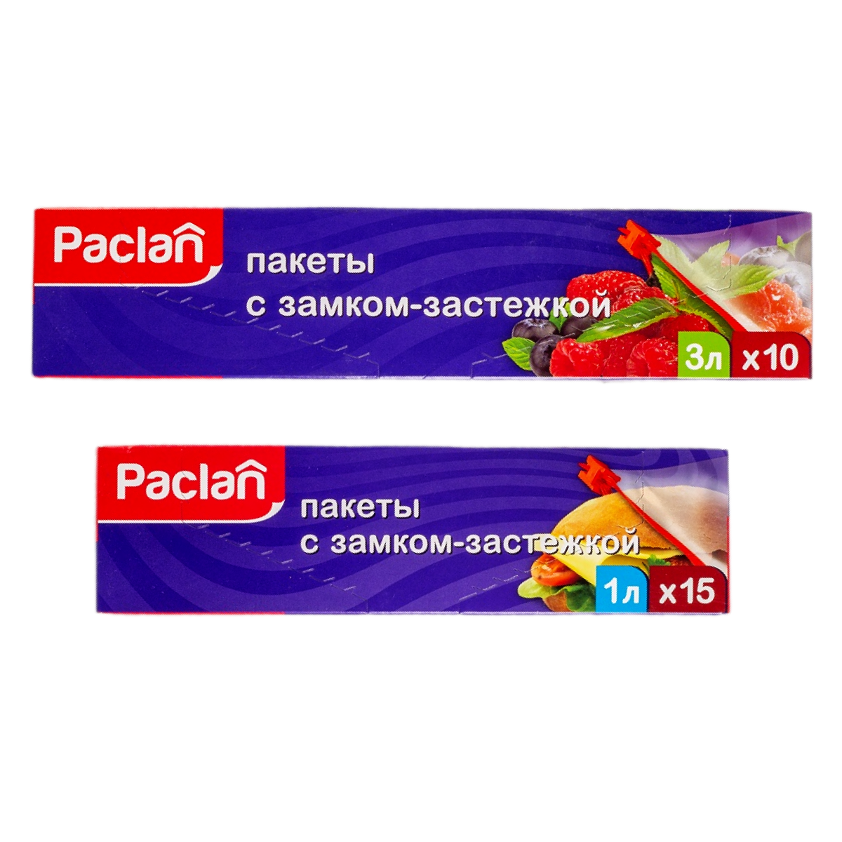 10 цен на Набор пакетов Paclan с замком-застежкой, 22х18 см. 1 л. 15 шт. и 27х28 см. 3 л. 10 шт.