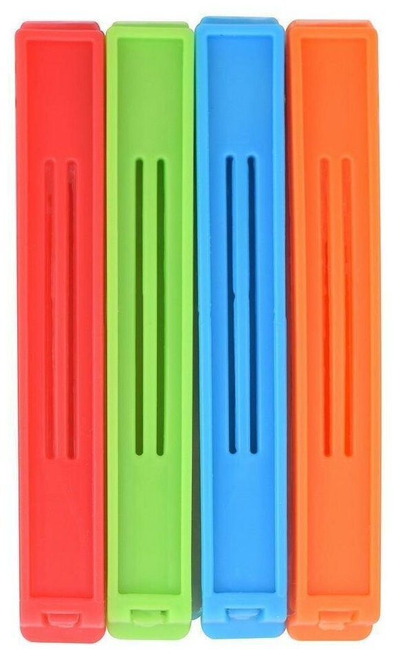 Зажимы для пакетов Мультидом "Клип", пластик, 4 шт. упаковка, 11см, 4 цвета