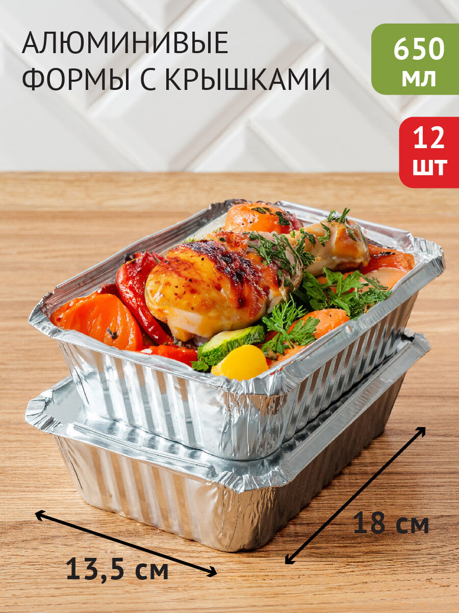 Алюминиевые формы для запекания 650 мл с крышкой, 12 шт, DOUBLE GREEN информация: