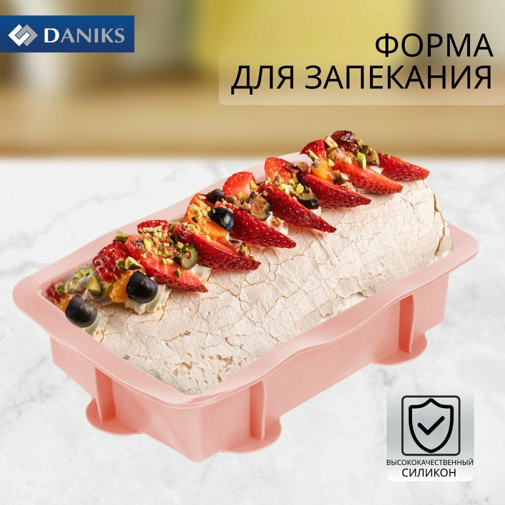 10 цен на Силиконовая форма для выпечки прямоугольная 29х20х6.5 см, розовая, Daniks, Savory