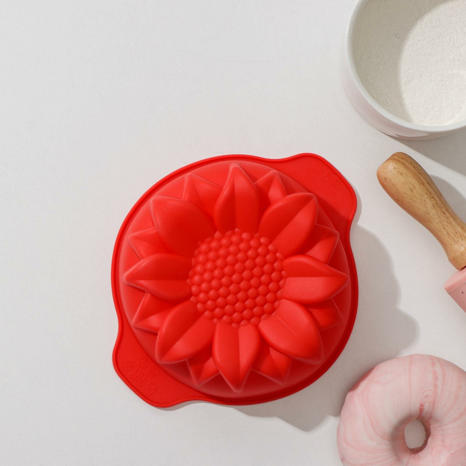 Форма для выпечки Доляна Хризантема , силикон, d 22 см, цвет розовый