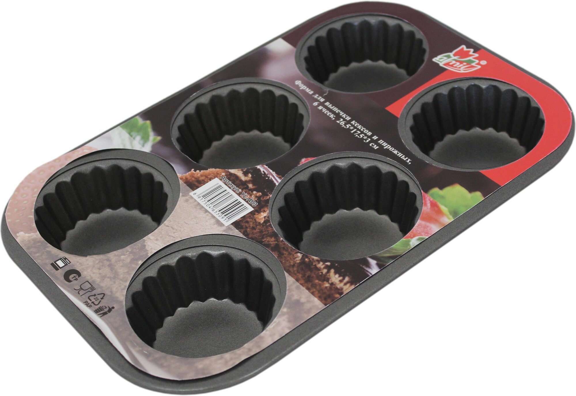 10 цен на Форма для выпечки кексов антипригарная Atmix 26,5х17,5х3 сантиметров, серая