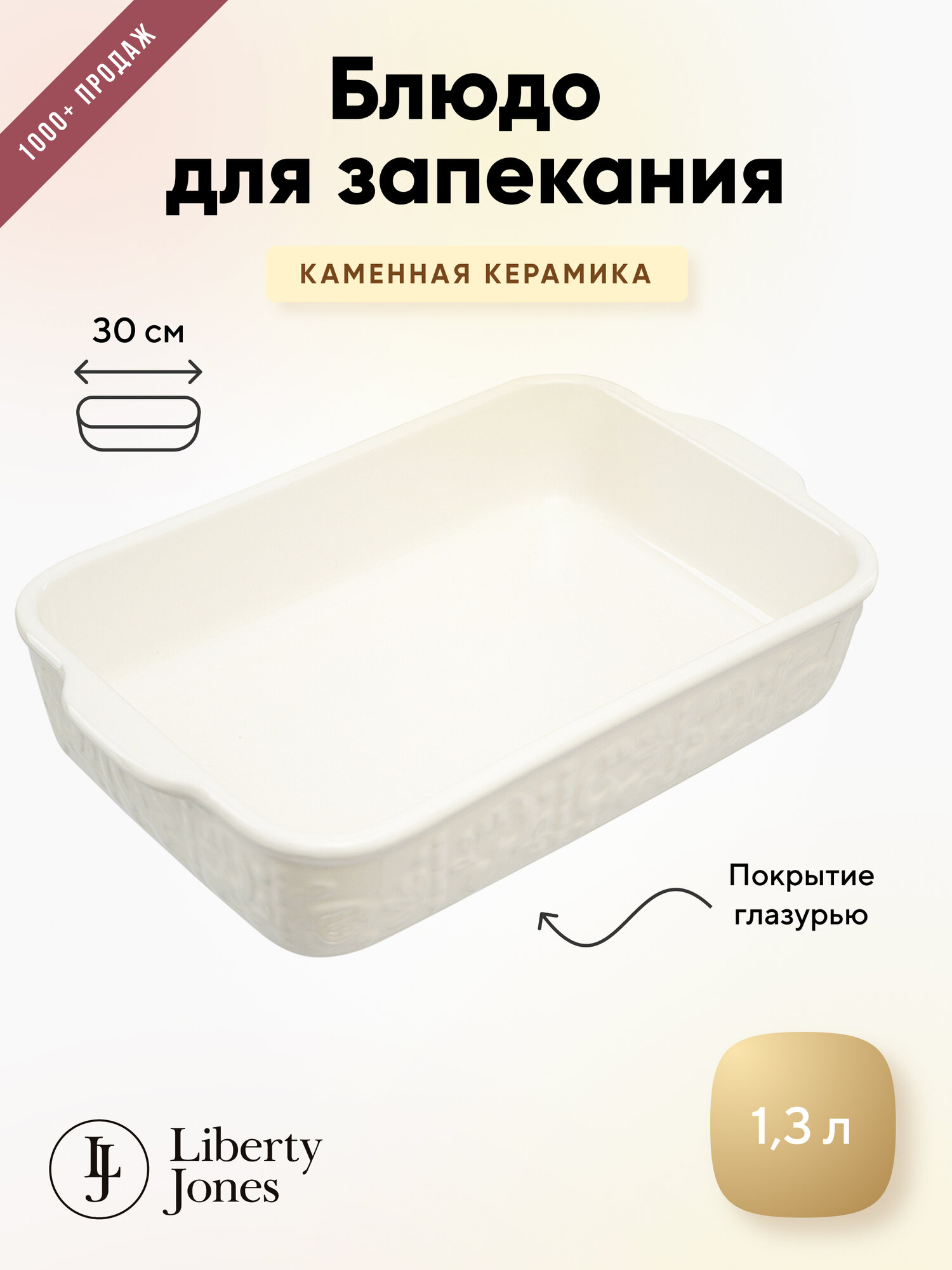 Керамическое блюдо для запекания Liberty Jones Birds of Paradise, 27 см, кремовое 4 118 ₽