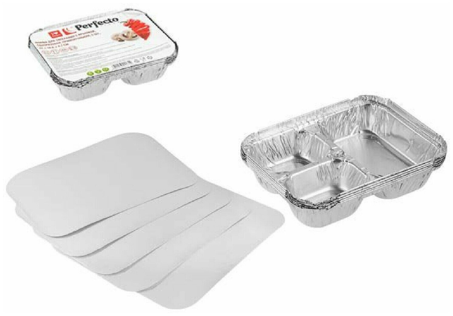 Форма для запекания с крышкой алюминиевая одноразовая 5 шт, 14.8х11.8х5 см, PERFECTO LINEA (45-514124) 287 ₽