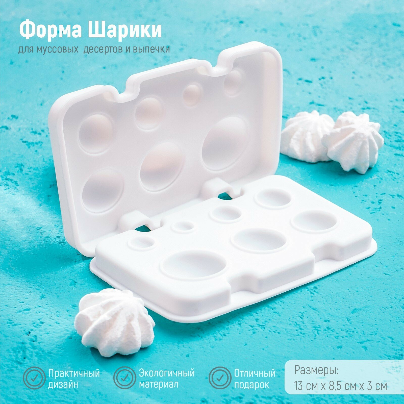 10 цен на Форма силиконовая для выпечки и муссовых десертов из 2 частей Доляна «Шарики», 7 ячеек (d=1-3,5 см), цвет белый
