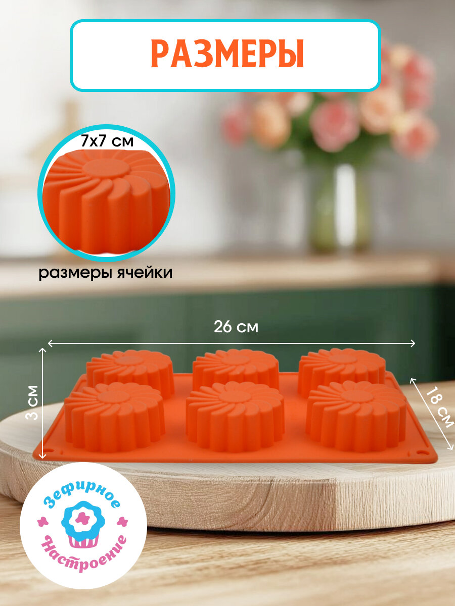 Форма для выпечки Зефирное Настроение "Цветы", силикон, для духовки, оранжевая информация: