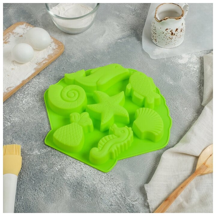 10 цен на Форма силиконовая для выпечки Доляна «Морские обитатели», 26×24×2,5 см, 7 ячеек, цвет микс