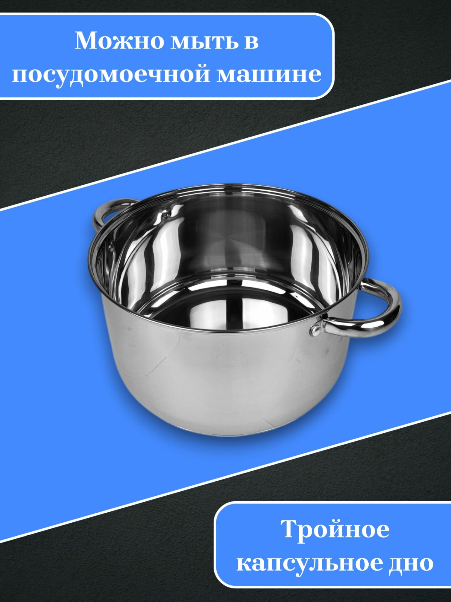 Кастрюля 10л из нержавеющей стали с крышкой, для всех типов плит, с толстым дном. 2 345 ₽