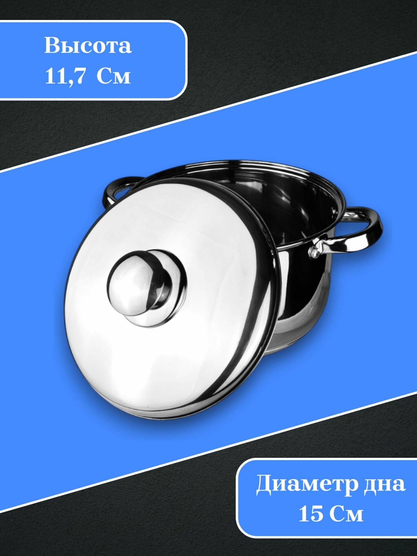 Кастрюля 2л из нержавеющей стали с крышкой, для всех типов плит, с толстым дном. 1 035 ₽