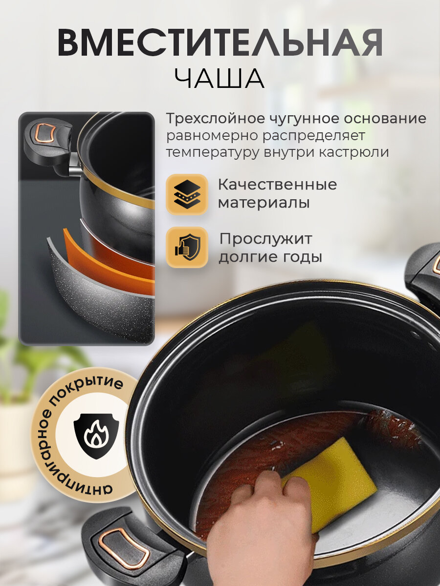 Кастрюля Маруся 7001-26к с индукционным дном со стеклянной крышкой, 5,5 л, цвет черный