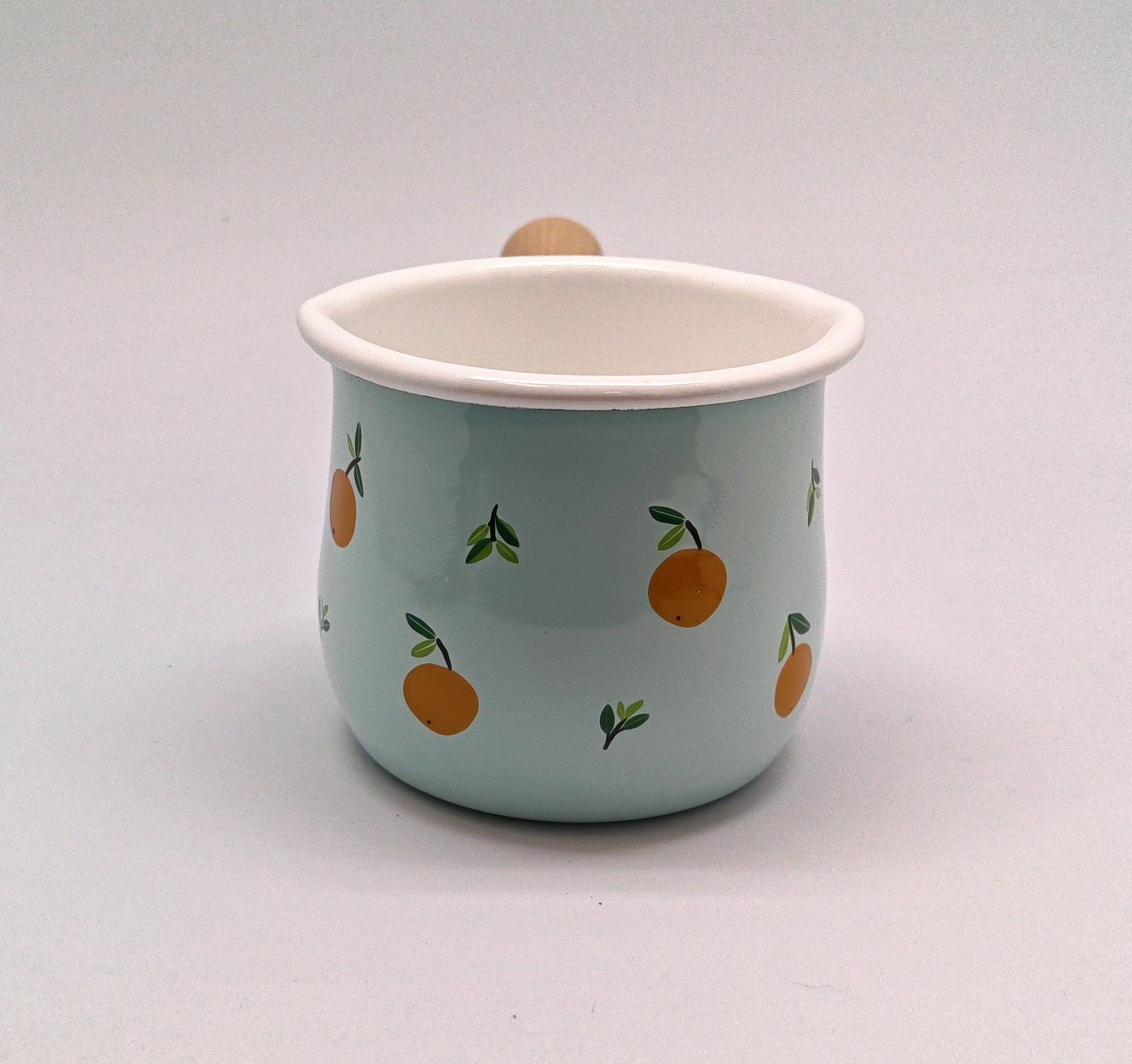 Кастрюля эмалированная 1,5 л с ободком белая с рисунком Фруктовая фантазия