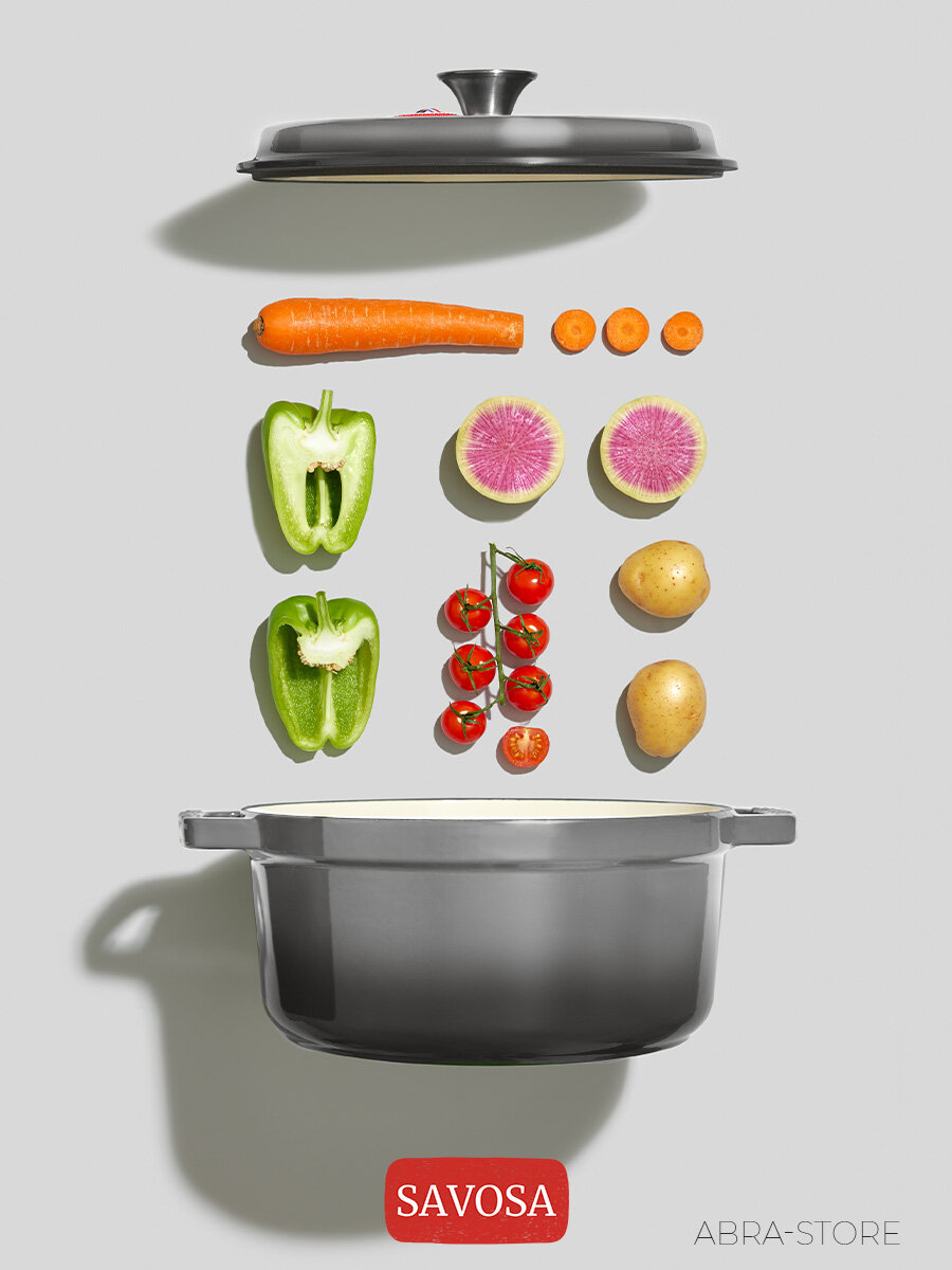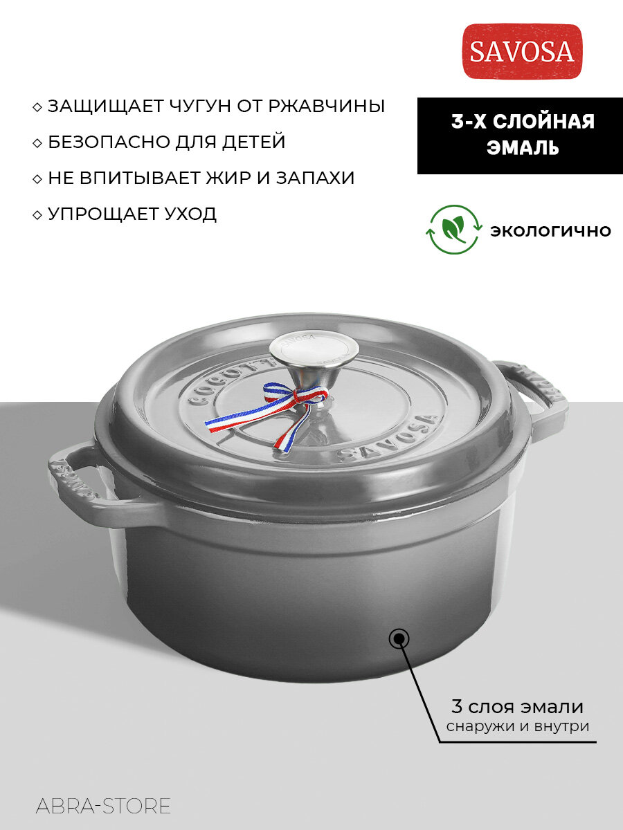 Чугунная эмалированная кастрюля Savosa 4,8 л, 26 см, серая, YT-KAN26GR информация: