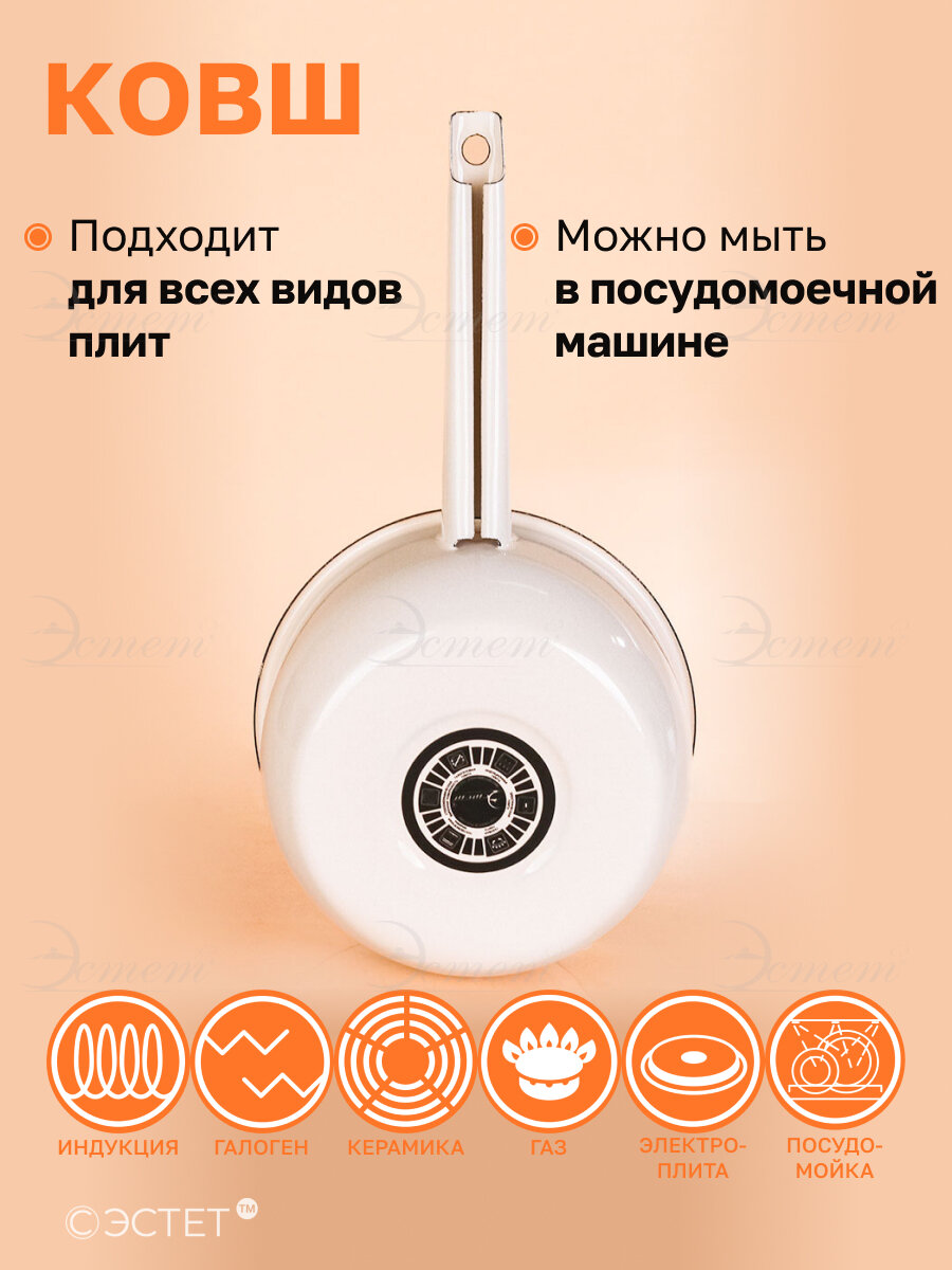 Ковш эмалированный 1,5 л для всех видов плит "Жемчужный" информация: