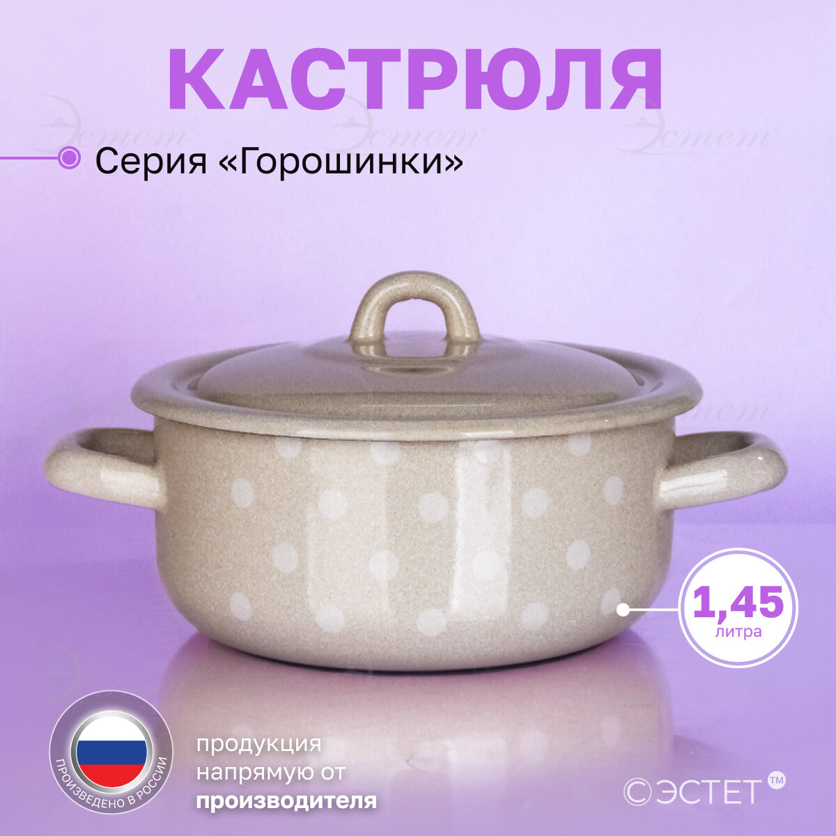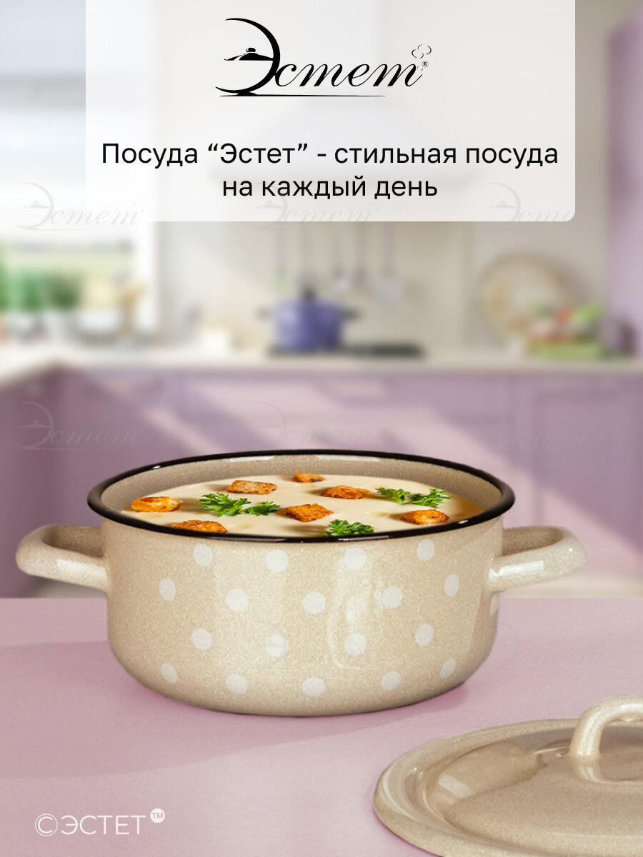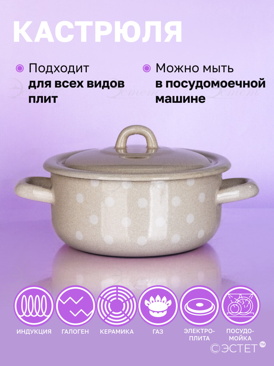 10 цен на Кастрюля эмалированная 1.45 л для всех видов плит "Горошинки"