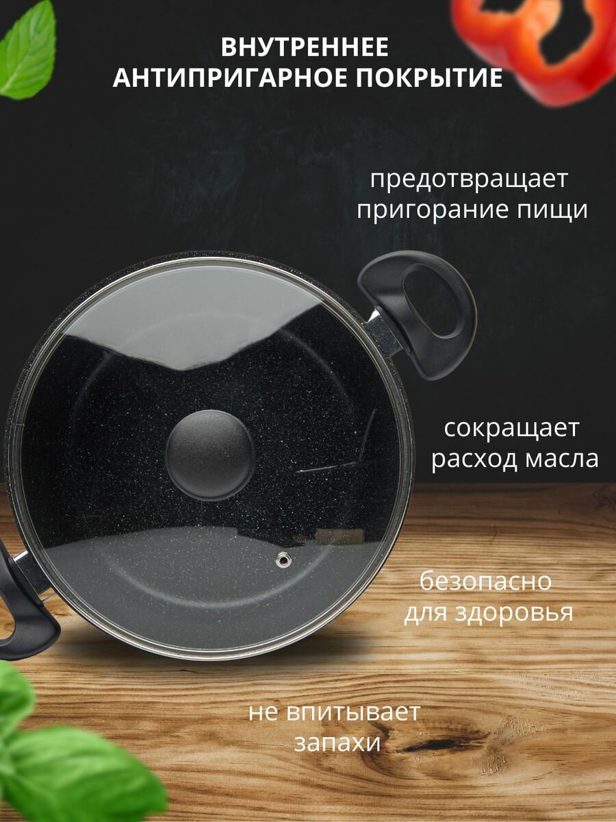 Кастрюля Маруся 7001-26к с индукционным дном со стеклянной крышкой, 5,5 л, цвет черный